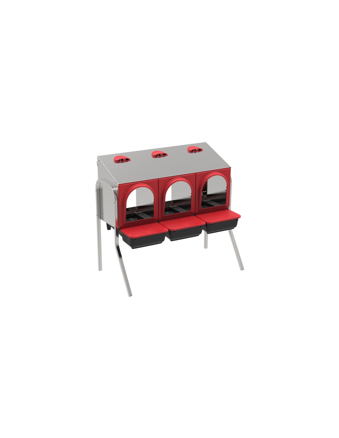 Fabricado con chapa galvanizada, este ponedero cuenta con tres departamentos independientes que permiten extraer la cubeta desde el interior del gallinero.