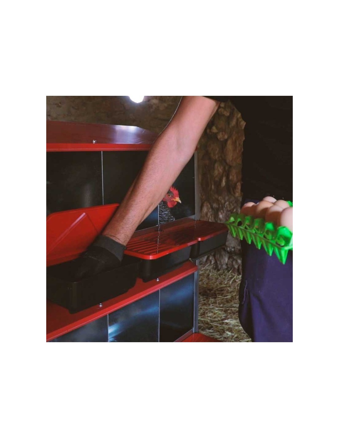 Las bandejas extraíbles simplifican la recolección de los huevos y el mantenimiento del ponedero.