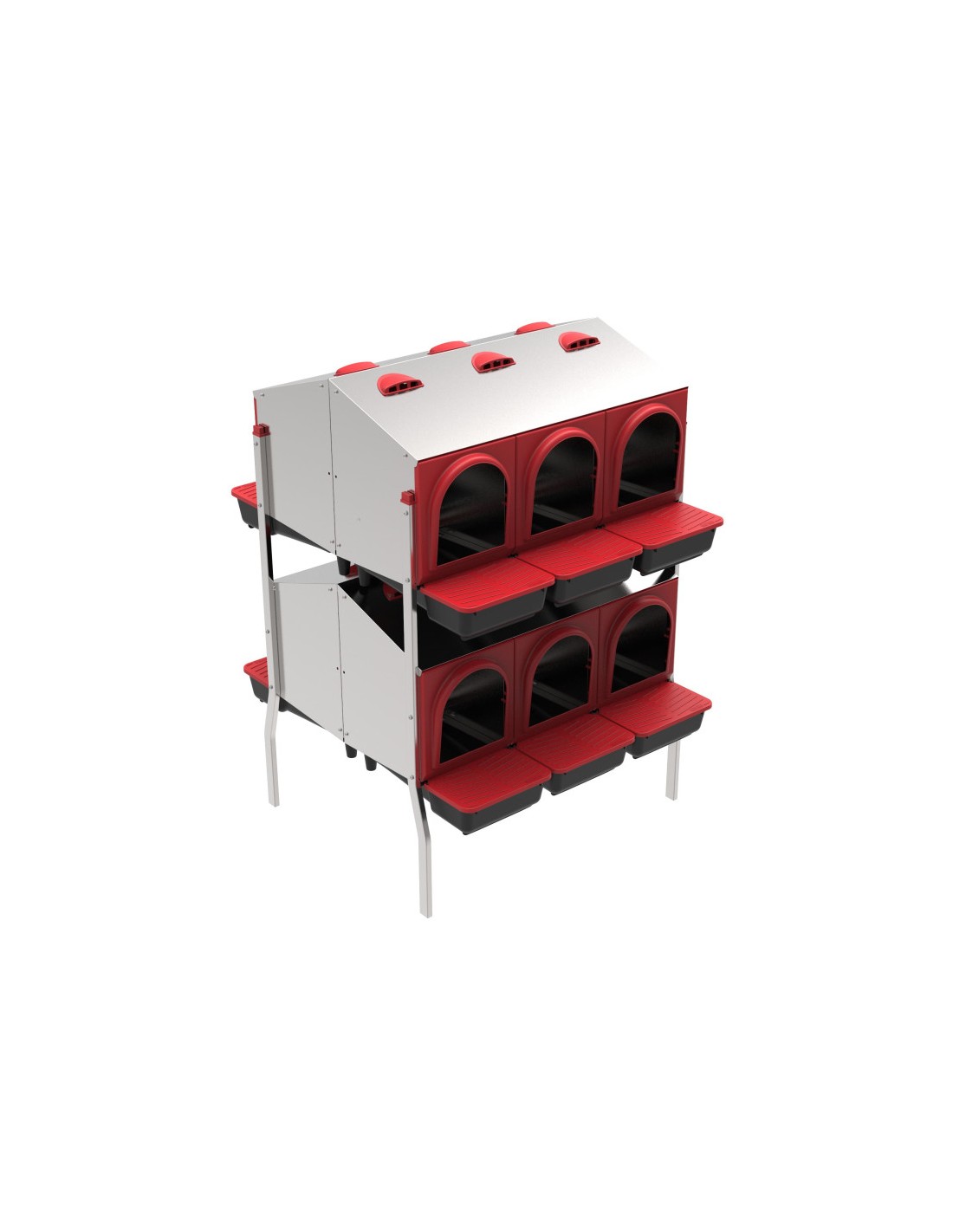 Con una construcción robusta de materiales de alta calidad, este ponedero de dos pisos cuenta con doce departamentos, proporcionando amplio espacio para que tus gallinas pongan sus huevos de forma cómoda y segura.