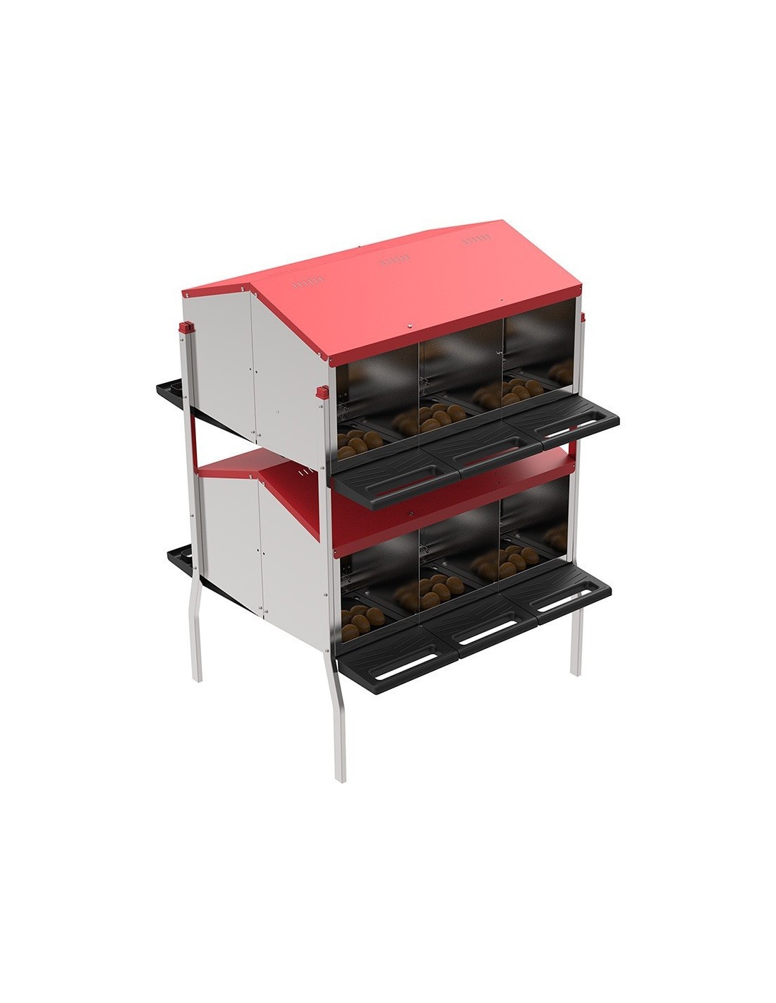 Con dos niveles y doce departamentos, este módulo ofrece un amplio espacio para que las aves puedan anidar cómodamente.