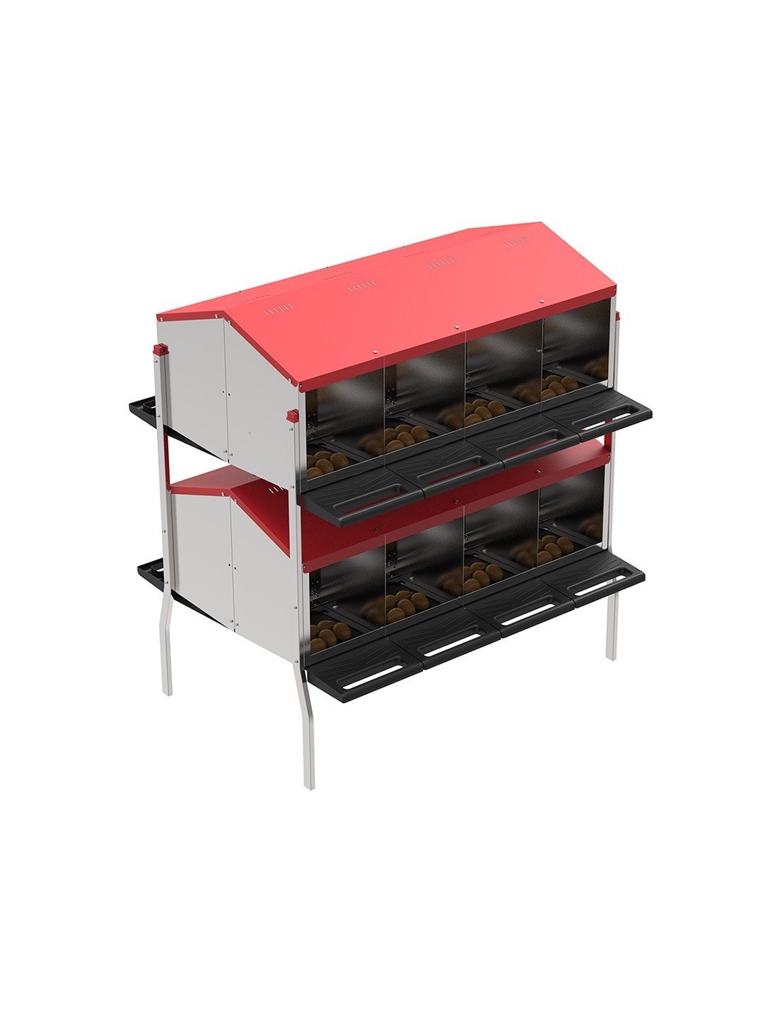 Este módulo, con dos niveles y dieciséis departamentos, está diseñado para proporcionar un entorno cómodo y seguro para que tus gallinas aniden.