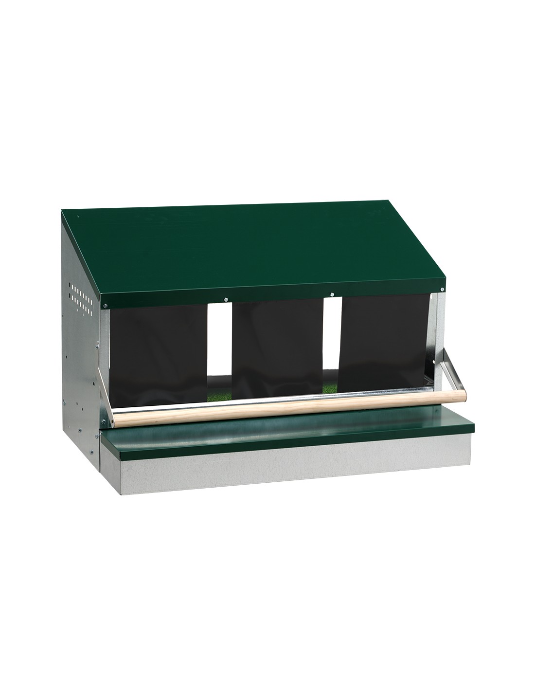 Con su diseño robusto y funcional, este ponedero proporciona un espacio adecuado para que las gallinas pongan sus huevos.