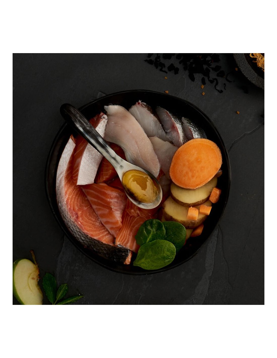 Este pienso está elaborado con más del 75% de salmón escocés fresco recién preparado, junto con arenque, trucha y pescado blanco, proporcionando una variedad de sabores y nutrientes beneficiosos.