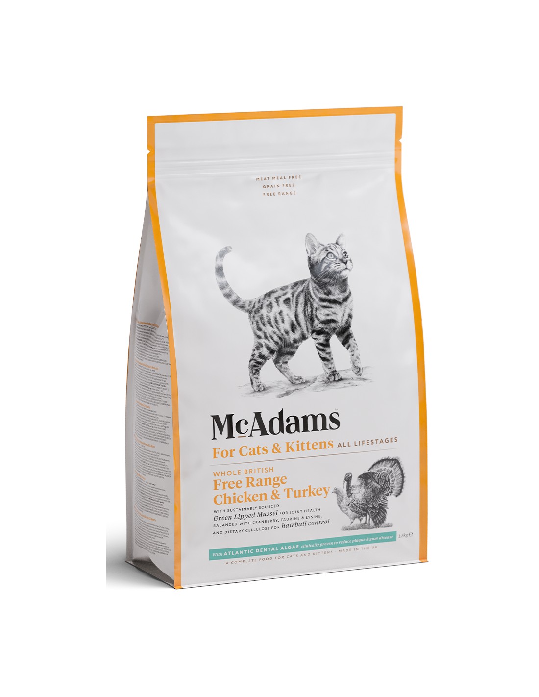 El MCADAMS POLLO Y PAVO CAMPEROS PARA GATOS Y GATITOS es un alimento premium diseñado para satisfacer las necesidades nutricionales de gatos y gatitos de todas las razas y etapas de la vida.
