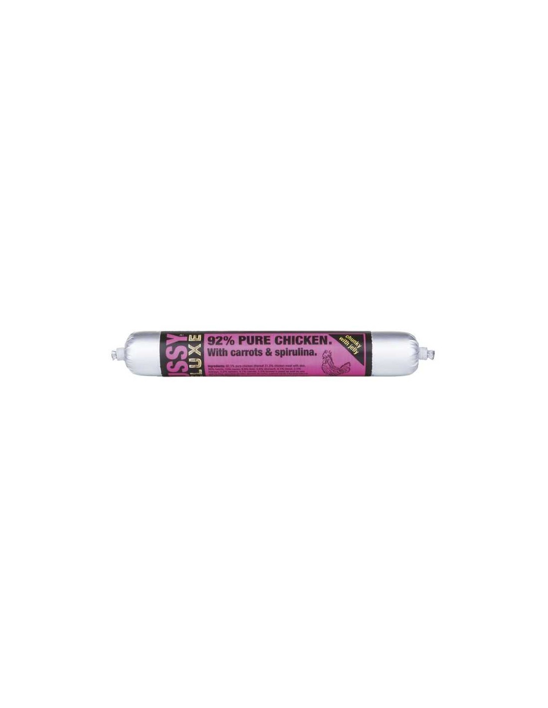 Esta salchicha húmeda, elaborada con un 92% de pollo puro, se combina perfectamente con zanahorias para ofrecer una fuente rica en proteínas y nutrientes esenciales.