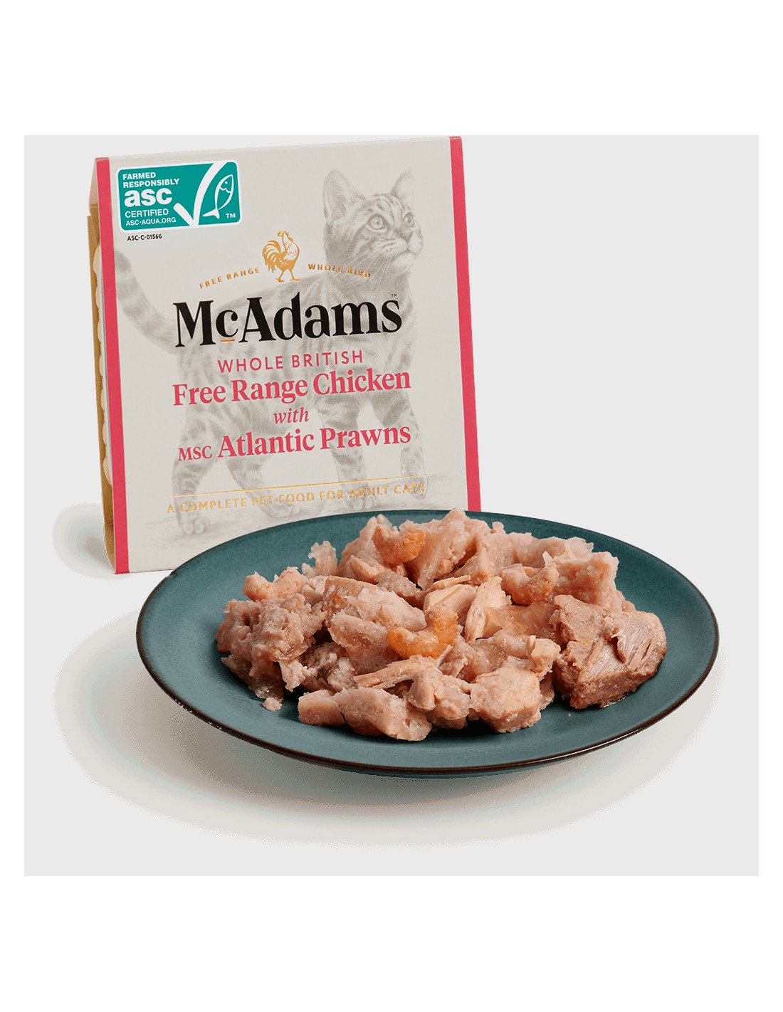 TARRINA DE POLLO CAMPERO Y GAMBAS DEL ATLÁNTICO PARA GATOS MCADAMS - 100 GR