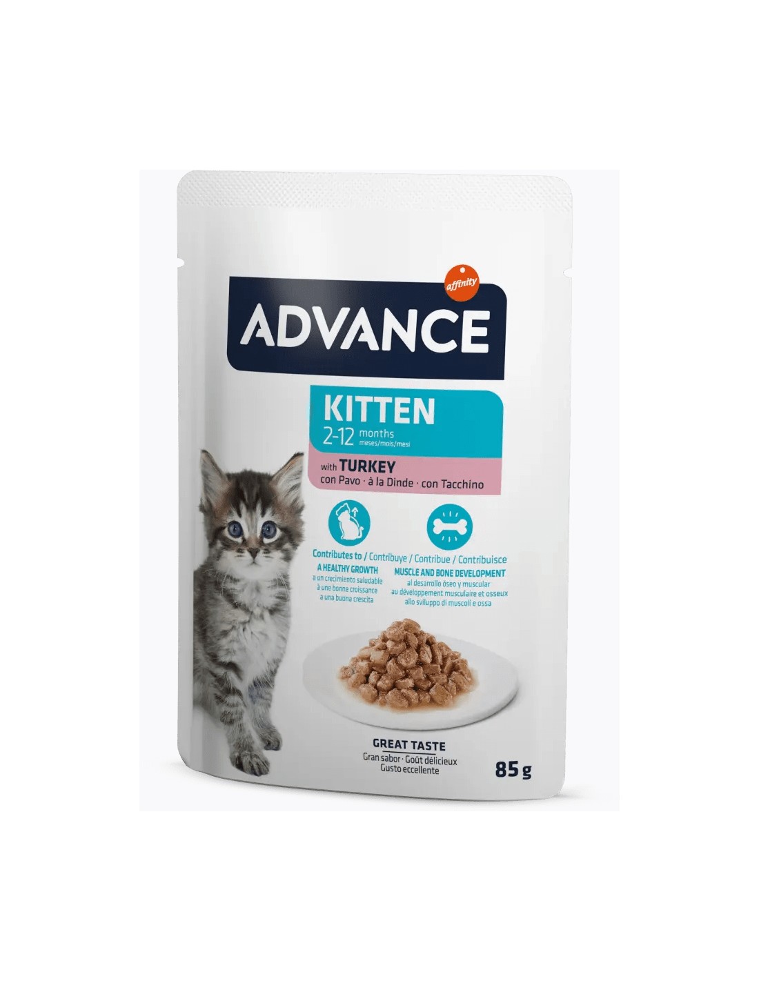 El alimento húmedo para gatitos Affinity Advance Wet Pavo es una opción nutritiva y deliciosa para tu felino en crecimiento.