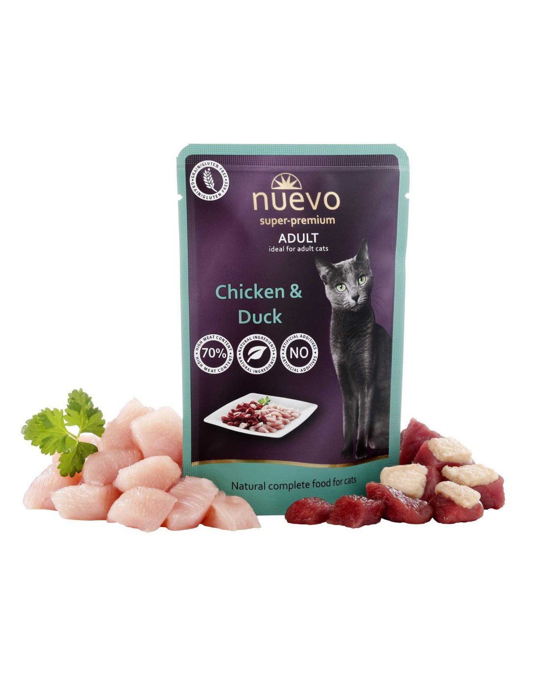 El Nuevo Adulto Pato y Pollo para Gatos - 85 g es una opción premium diseñada para satisfacer las necesidades nutricionales de tu gato adulto.
