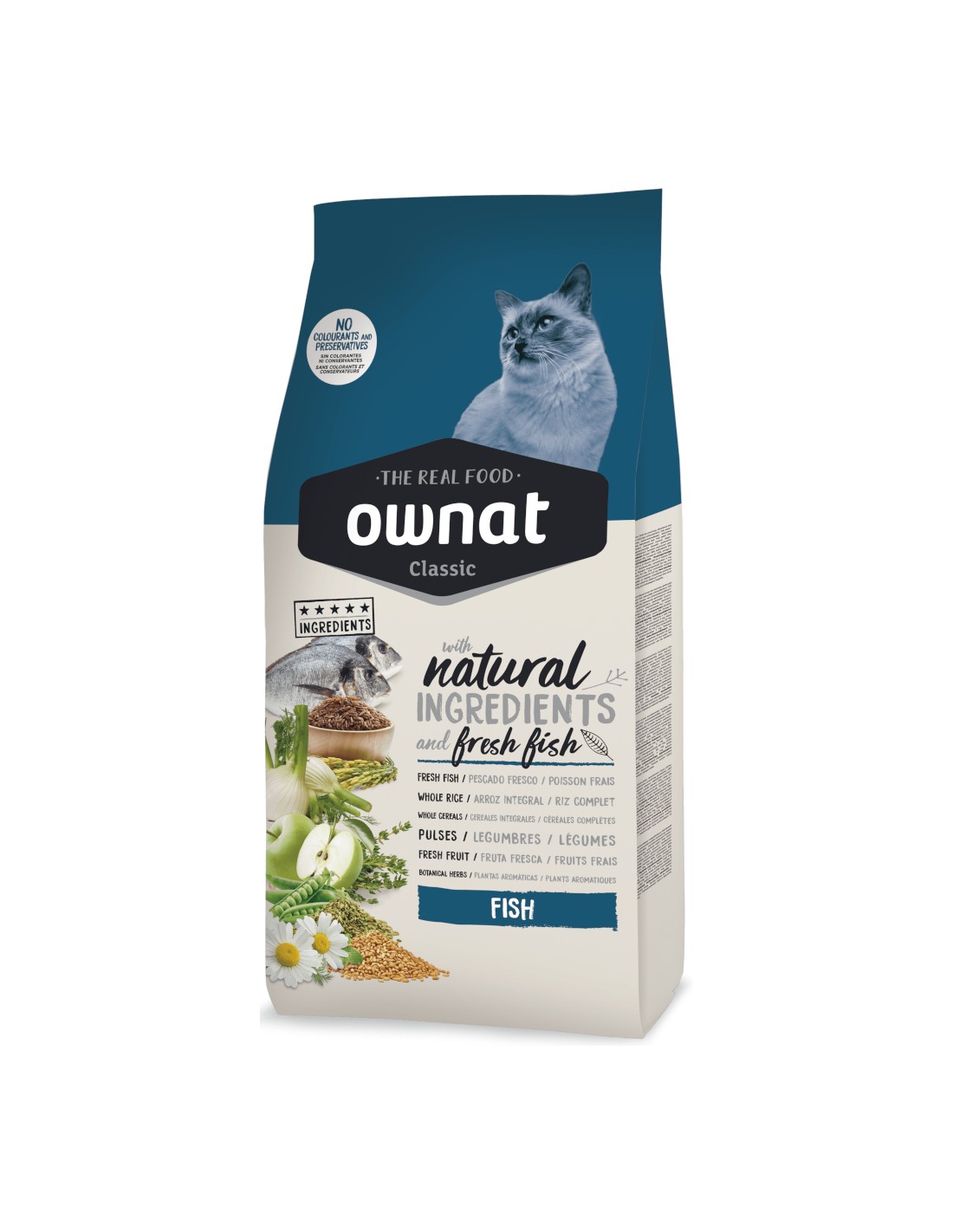 Rico en ácidos grasos omega-3 y omega-6, OWNAT CLASSIC FISH ayuda a mantener una piel sana y un pelaje brillante.