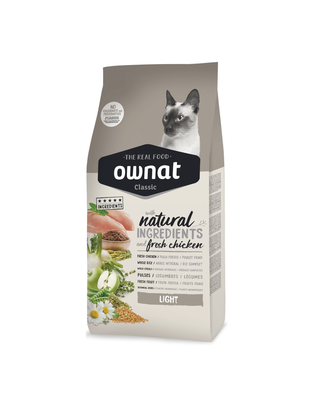 Dale a tu gato una alimentación equilibrada y deliciosa que le ayudará a mantenerse en su peso ideal con OWNAT CLASSIC LIGHT.