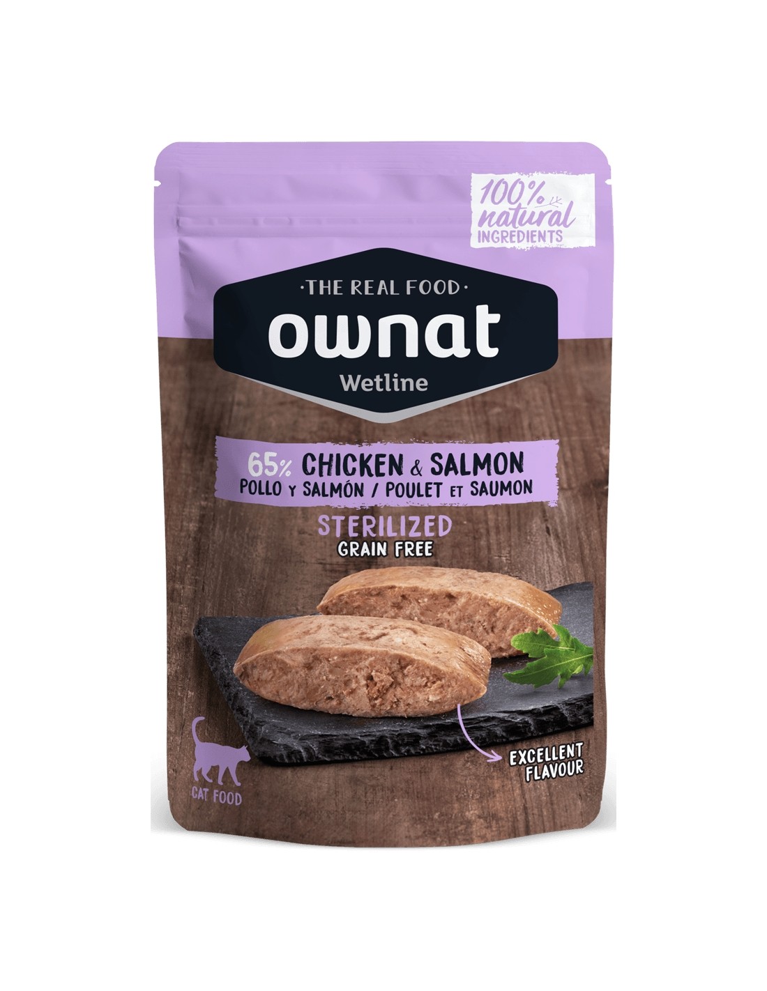 POUCHE POLLO Y SALMÓN PARA GATOS ESTERILIZADOS OWNAT - 85 GR