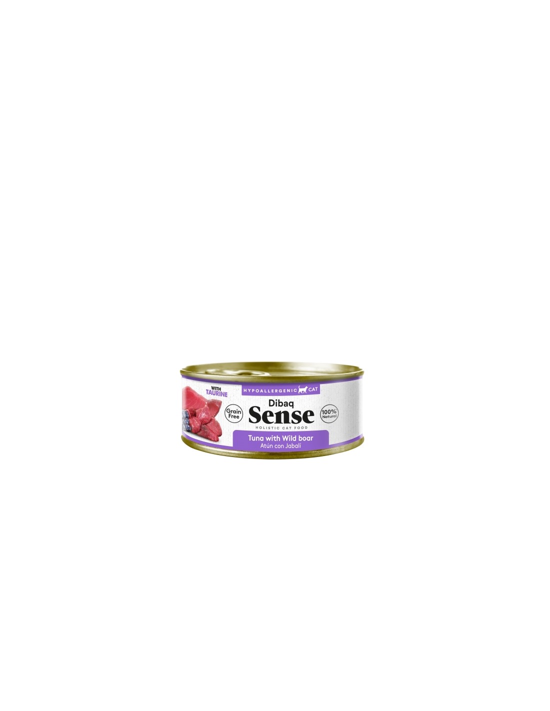 El Dibaq Sense Cat Grain Free es un alimento húmedo para gatos elaborado con atún y jabalí, que ofrece una dieta equilibrada y deliciosa para tu mascota.