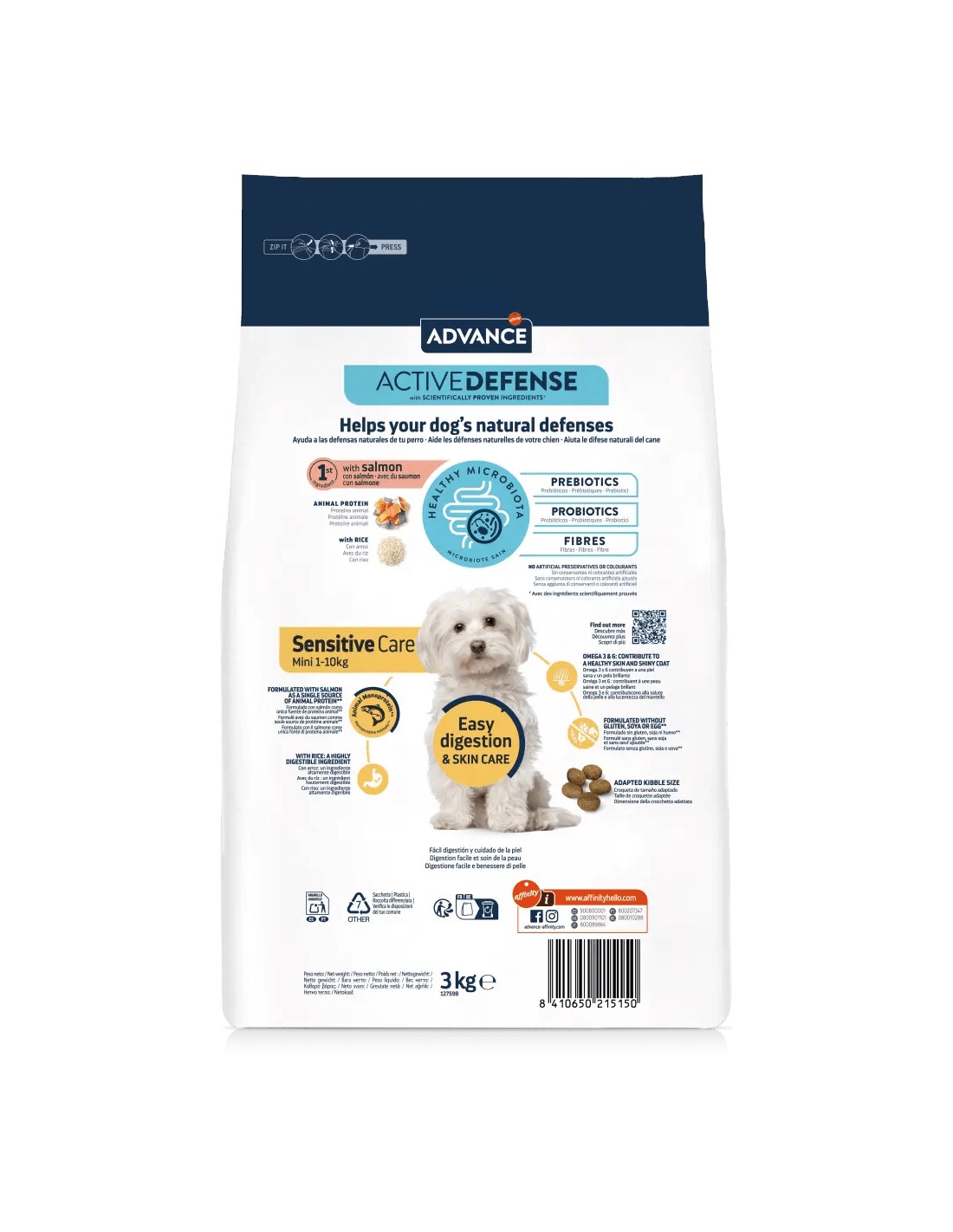 El Affinity Advance Adult Salmon y Arroz Sensitive es un pienso de alta calidad especialmente formulado para perros adultos con sensibilidad alimentaria.