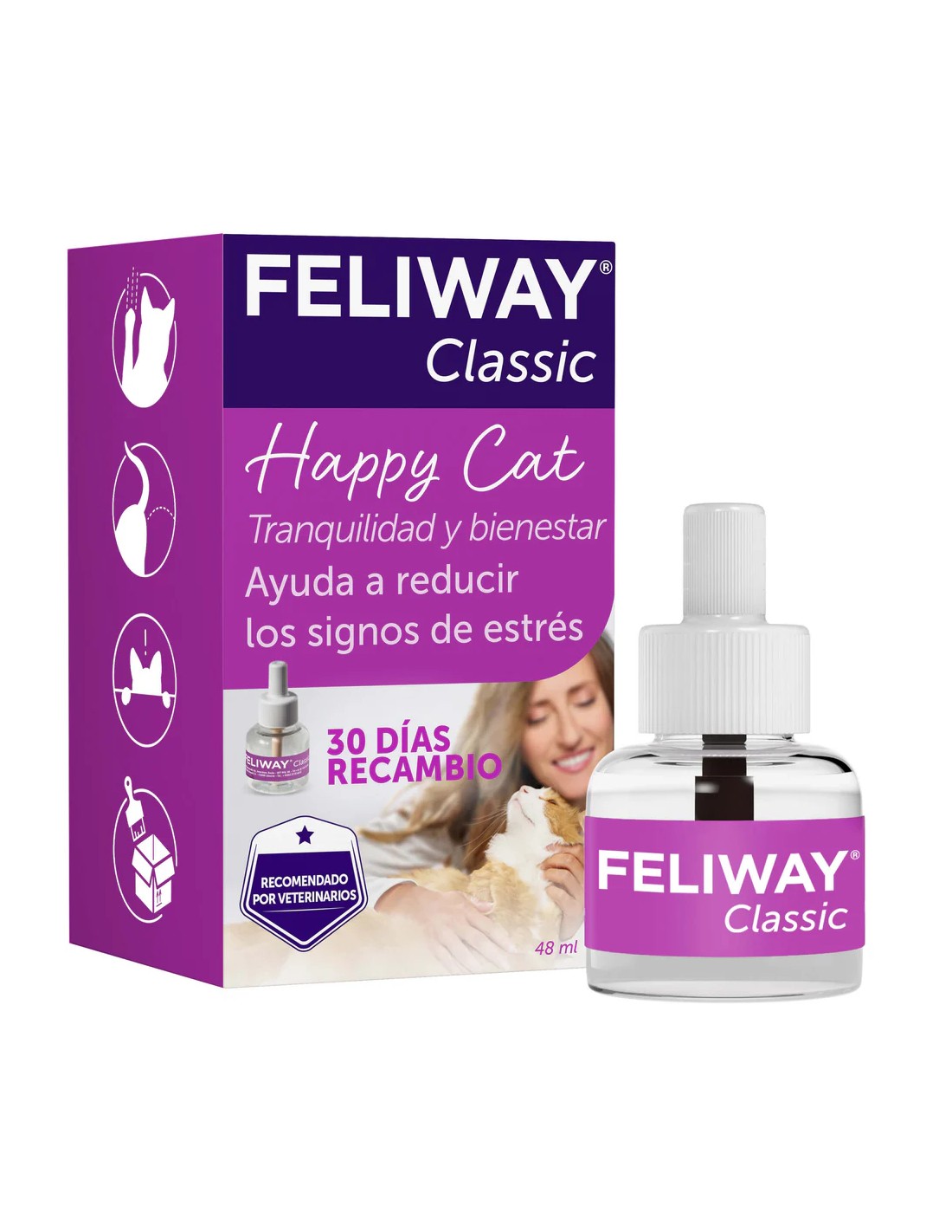 El Feliway Classic Recambio 1 Mes - 48 ml es la solución ideal para mantener a tu gato tranquilo y feliz en su entorno.