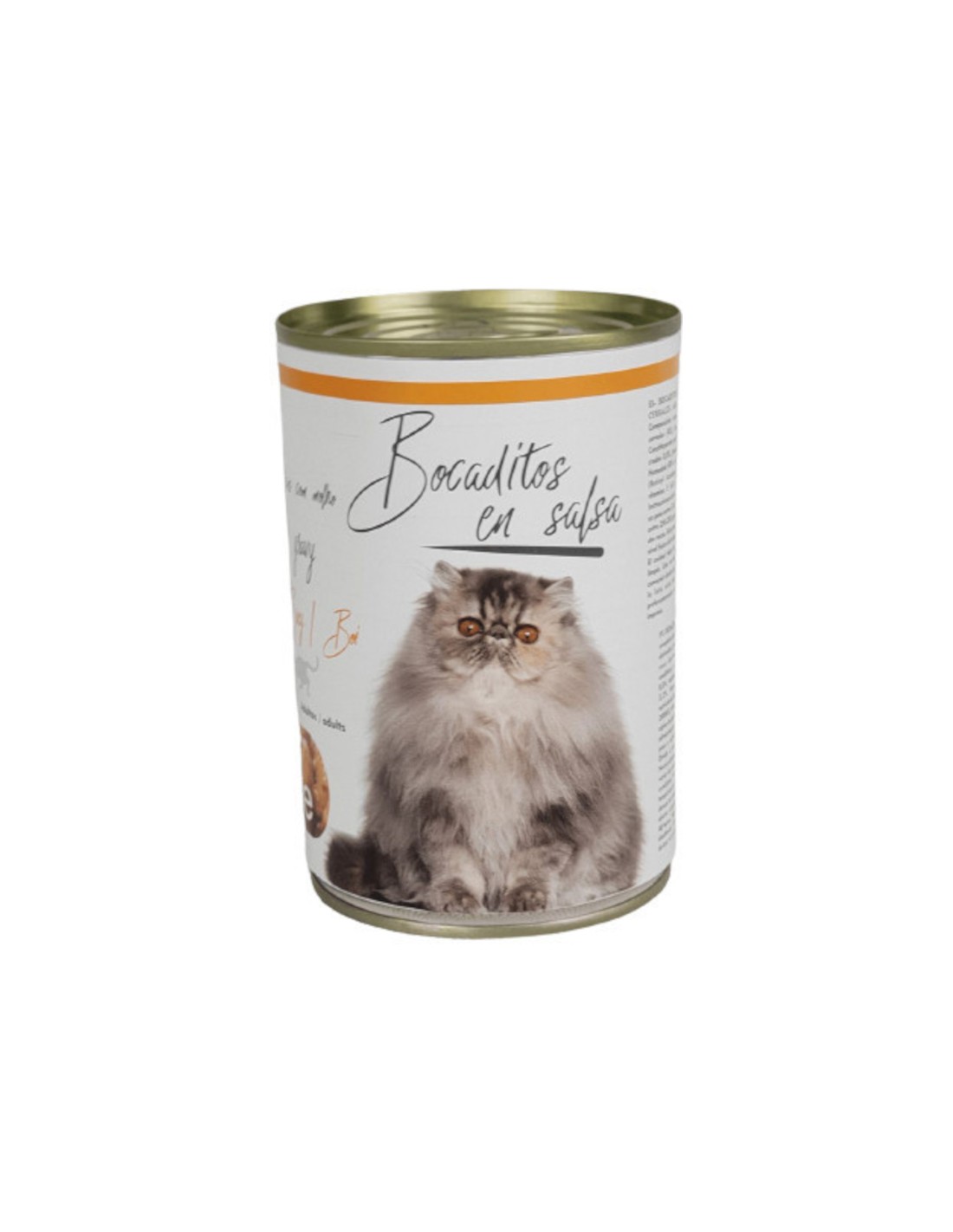 Este alimento húmedo de 415 gramos está hecho con tiernos trozos de buey, cubiertos en una rica y sabrosa salsa que hará que tu gato se relama los bigotes.