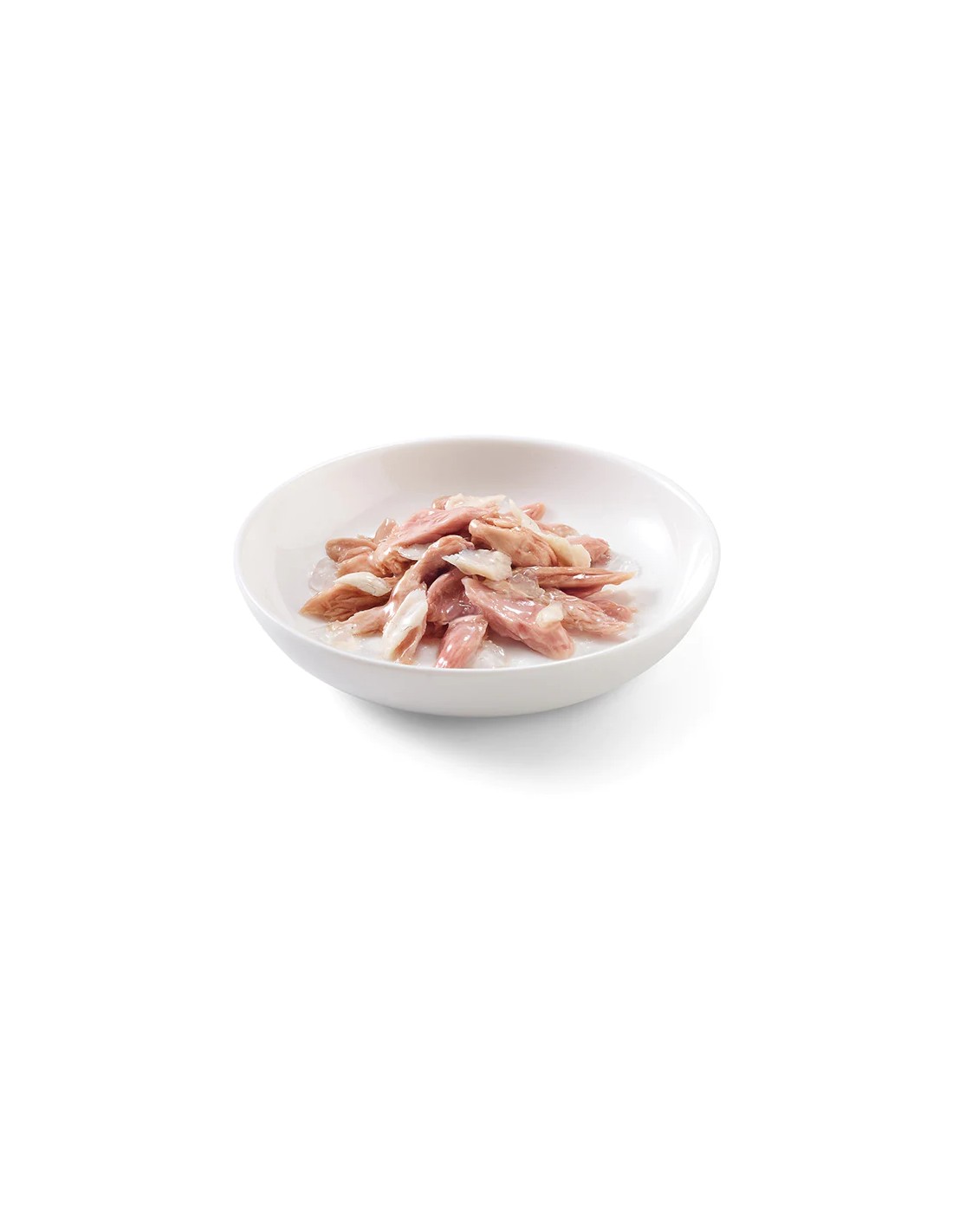 Este alimento húmedo combina atún fresco y lubina, todo cocido en una suave gelatina que conserva todos los nutrientes y el sabor natural.