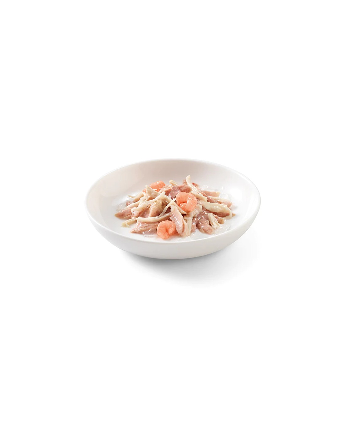 Este alimento húmedo premium está elaborado con atún de alta calidad, pollo tierno y gambas jugosas, todo cocido en una suave gelatina que conserva todos los nutrientes y el sabor natural.