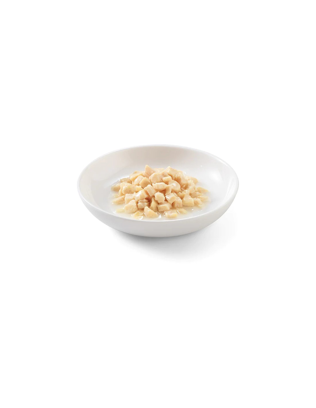 Este alimento húmedo está elaborado con filetes de pollo de alta calidad, cocidos en una deliciosa gelatina que conserva todos los nutrientes y el sabor natural.