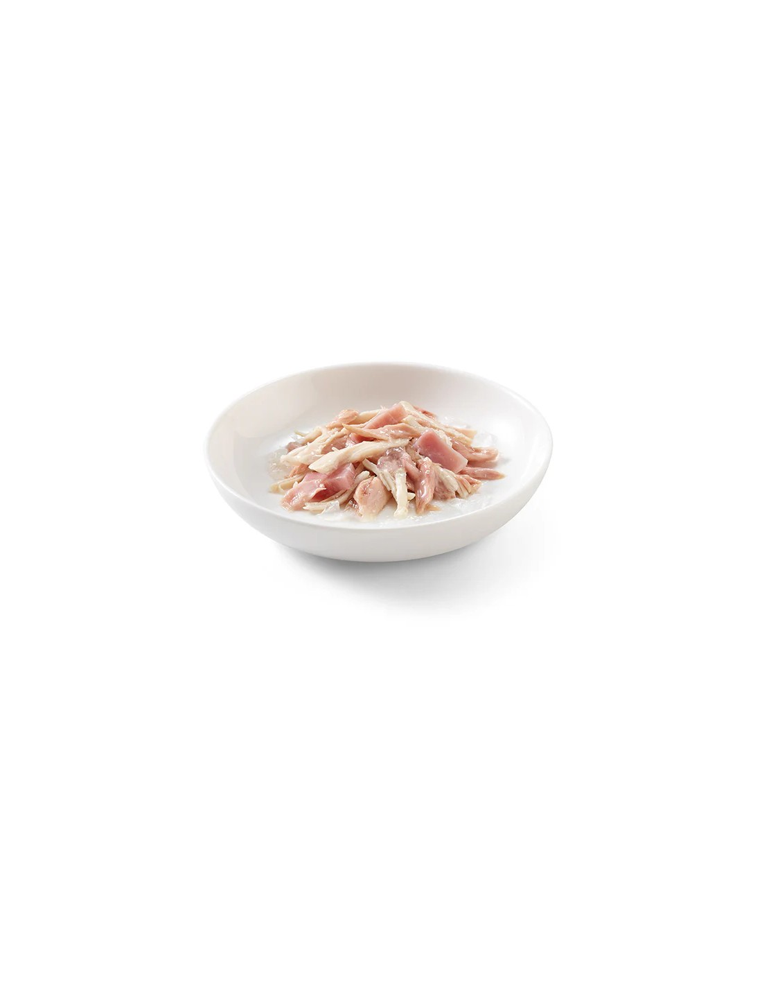 Este alimento húmedo está elaborado con pollo tierno y jamón, cocidos en una deliciosa gelatina que conserva todos los nutrientes y el sabor natural.