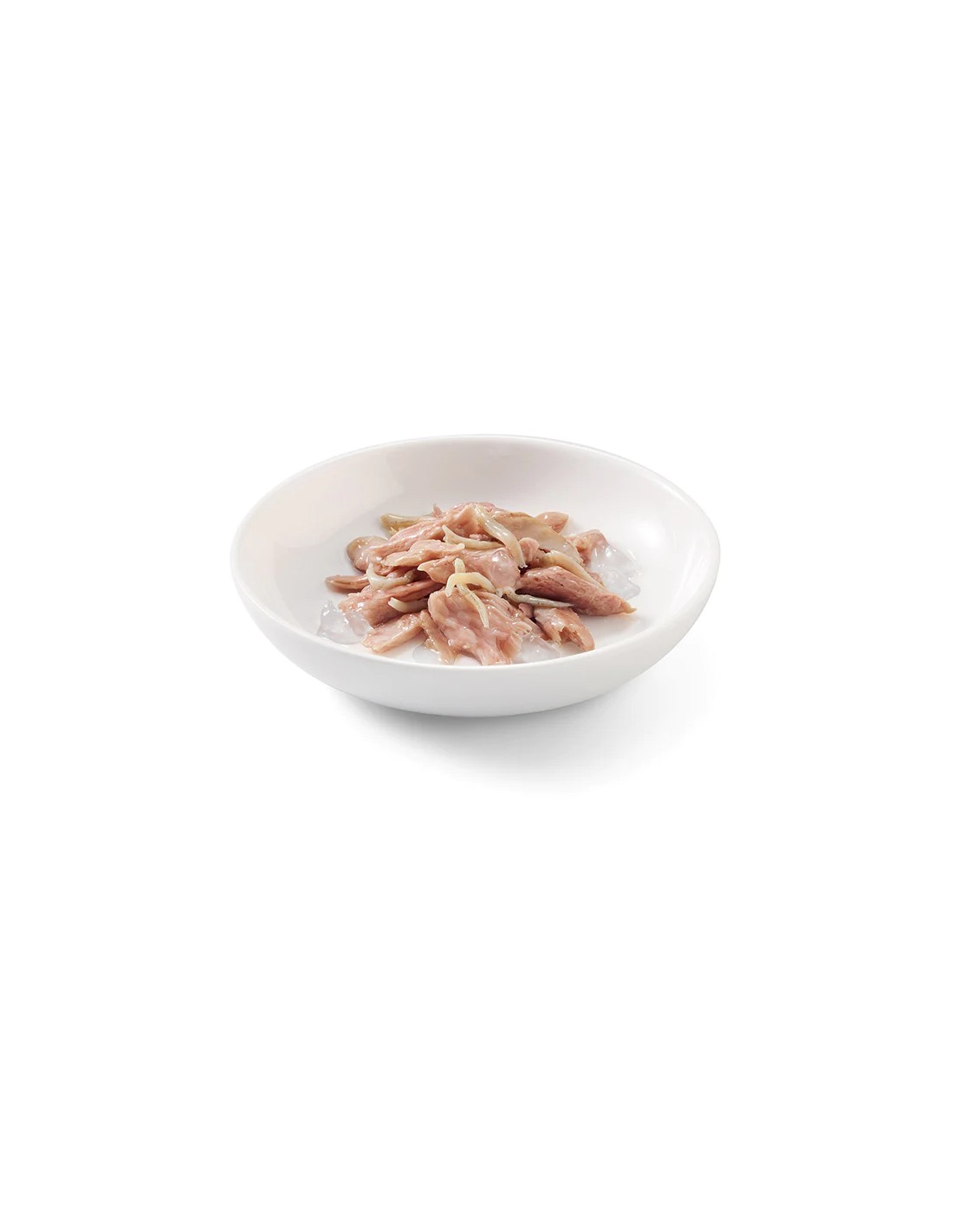 Este alimento húmedo premium combina atún fresco y jugosas anchovetas, todo cocido en una deliciosa gelatina que conserva todos los nutrientes y el sabor natural.