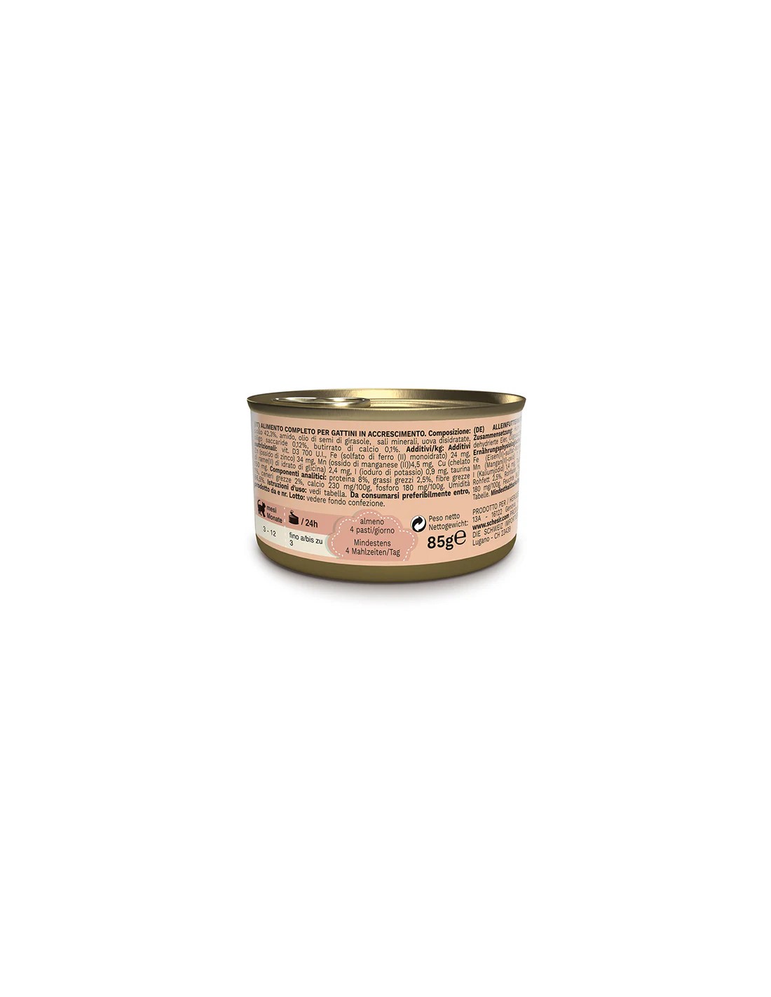 El SCHESIR Kitten Pollo en Mousse para Gatitos - 85 GR (14 Unidades) es una opción gourmet diseñada para los paladares más exigentes de los gatitos en crecimiento.