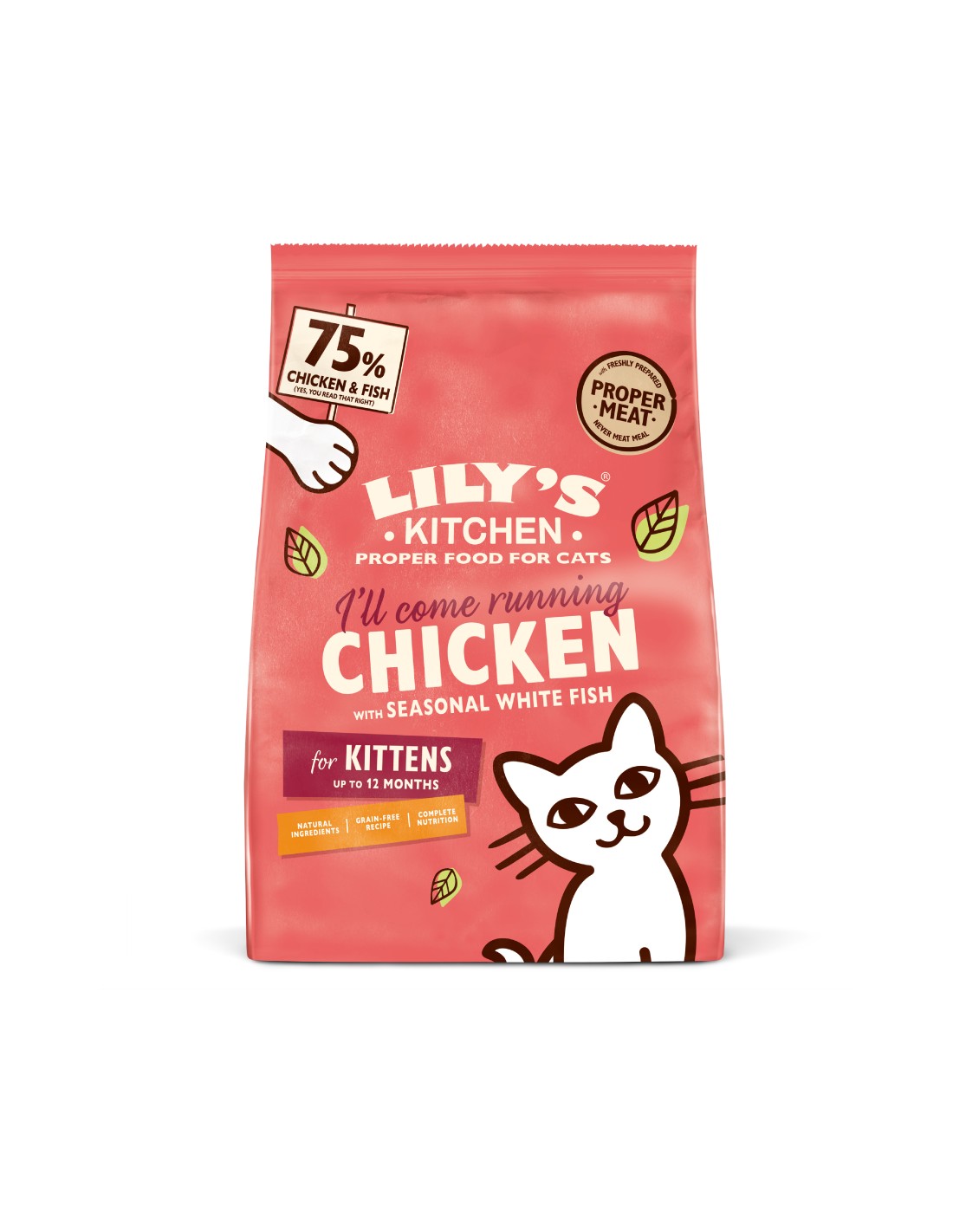 Lilys Chicken - White Fish Dry Food es un delicioso alimento seco para gatitos está formulado con ingredientes naturales y frescos, incluyendo 50% de pollo y 10% de pescado blanco de temporada.