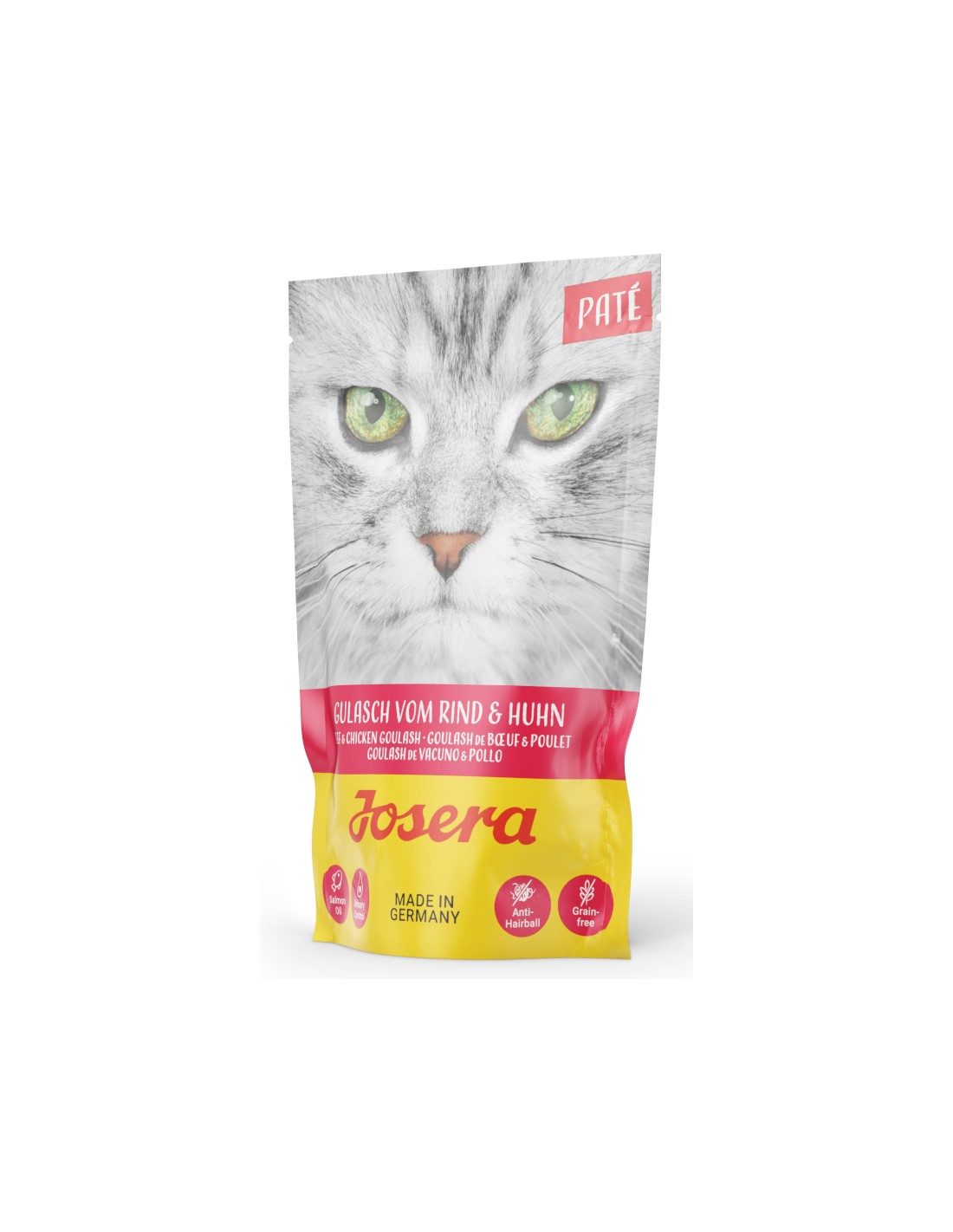 El paté de ternera y pollo Goulash de Josera es un alimento húmedo de alta calidad para gatos.
