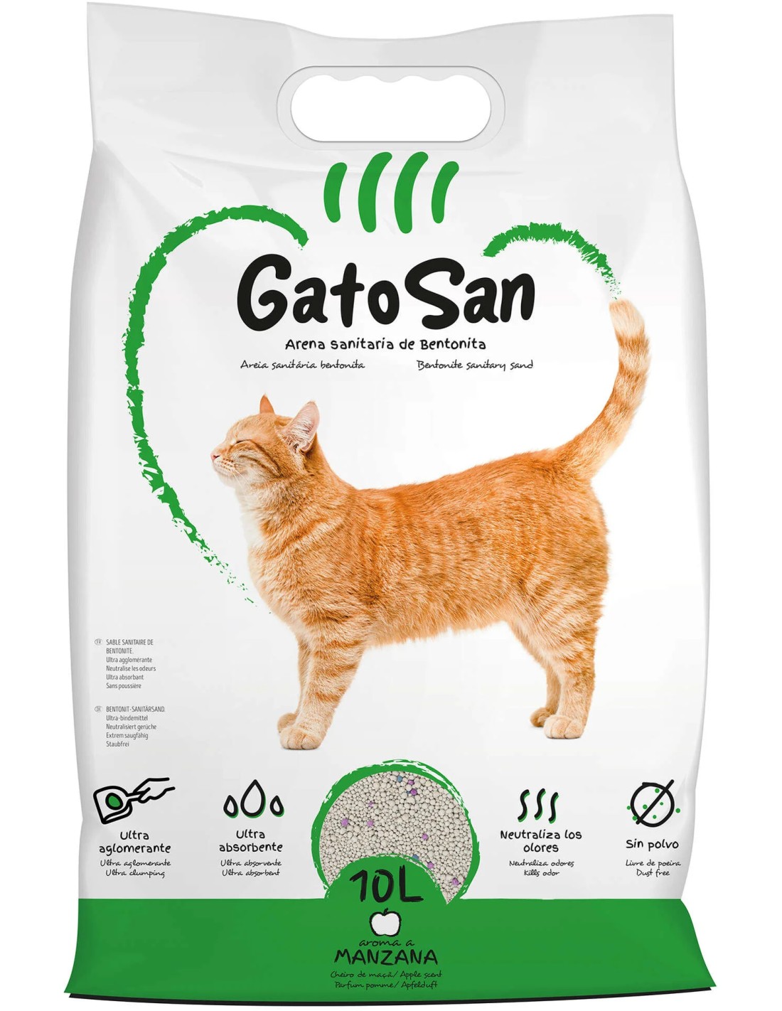 Mantén la higiene de la caja de arena de tu gato con la Arena Aglomerante Gatosan Manzana.