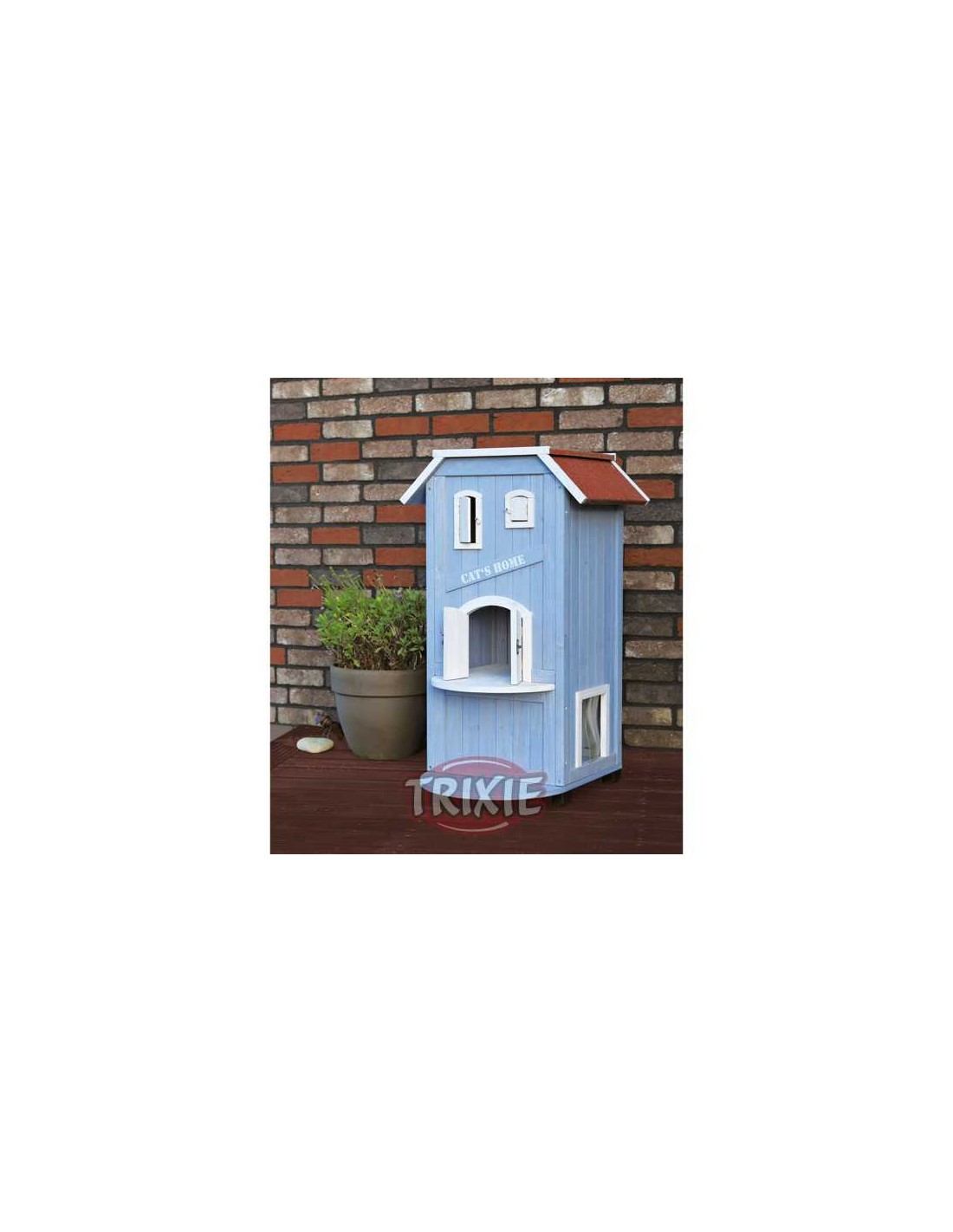 CASETA EXTERIOR GATOS TRIXIE - AZUL CLARO / BLANCO