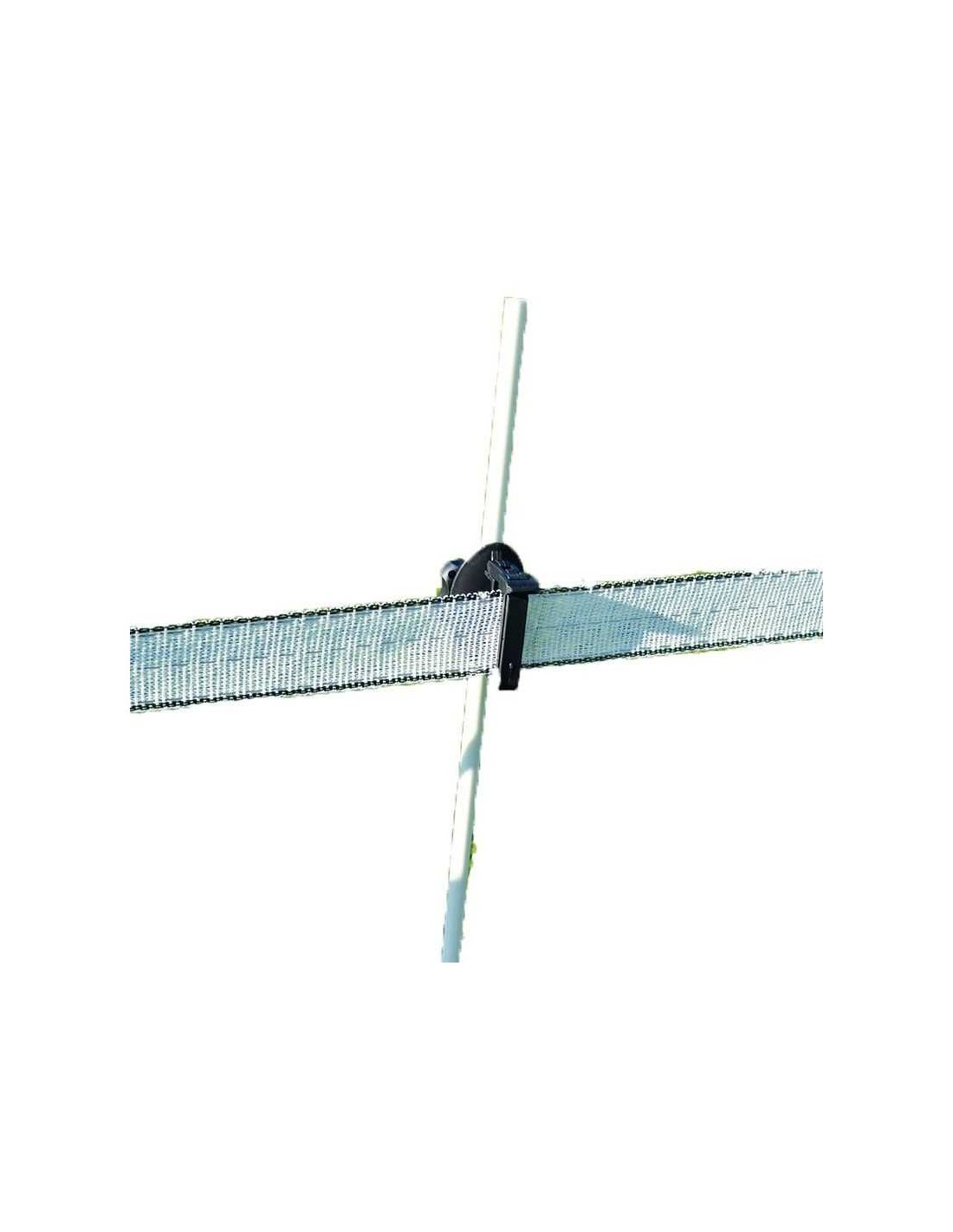 Ideal para cintas de hasta 12 mm y cordones de hasta 8 mm, proporciona una barrera segura que evita que los animales entren en contacto con el alambre de puesta a tierra.