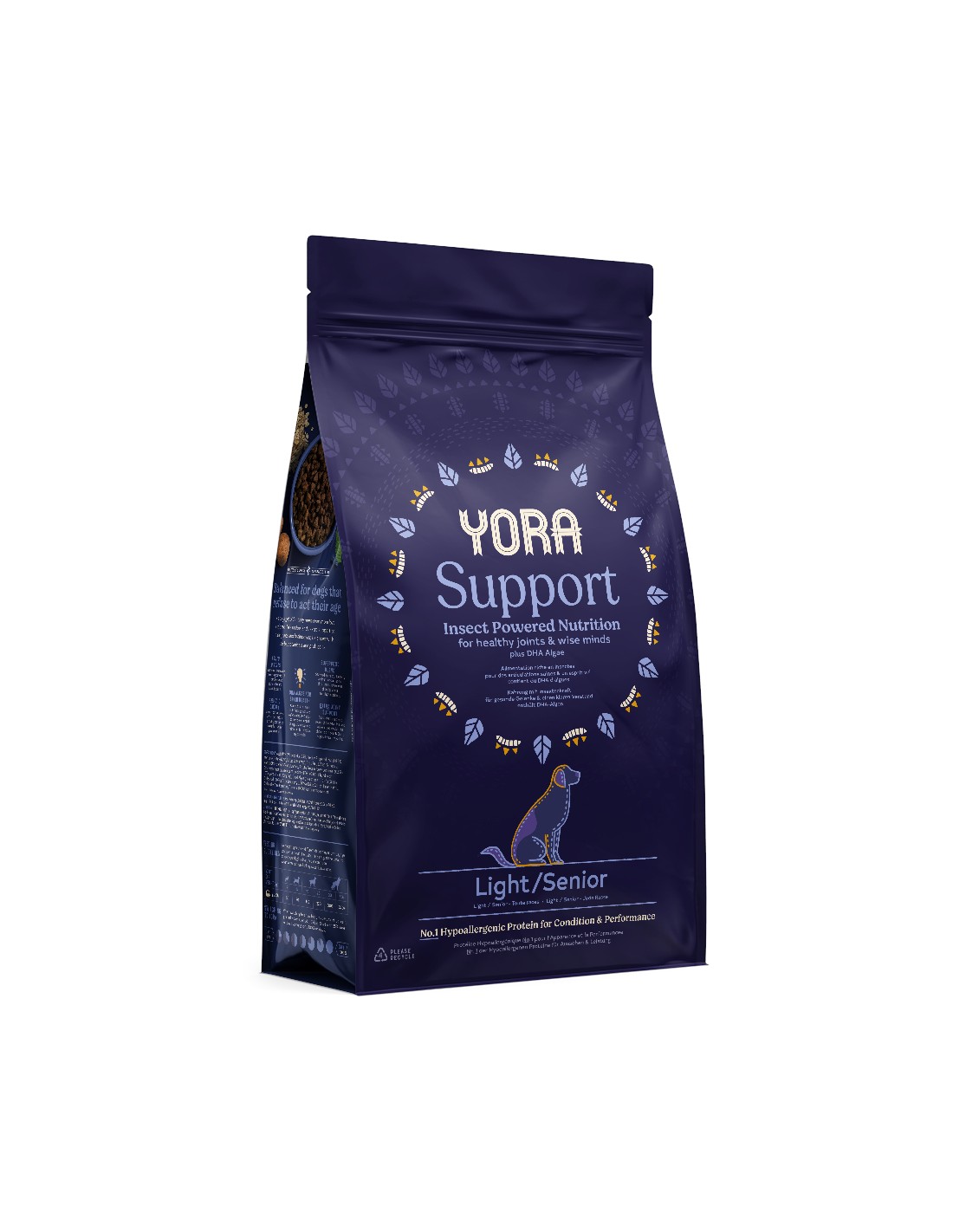 Con Yora Support Light y Senior, tu perro disfrutará de una nutrición completa y sostenible, garantizando su bienestar y felicidad.