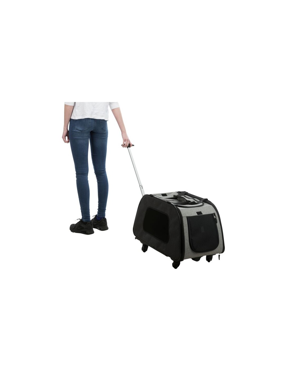 La trolley Trixie es el accesorio perfecto para llevar a tu mascota de forma cómoda y segura. Con un diseño resistente y duradero, esta trolley está fabricada con materiales de alta calidad que garantizan la comodidad de tu mascota durante el transporte. Con un amplio espacio interior, esta trolley es ideal para perros de tamaño mediano o pequeño. Su diseño plegable permite un almacenamiento fácil y conveniente cuando no está en uso. Además, su manija telescópica y ruedas giratorias la hacen fácil de transportar en cualquier situación