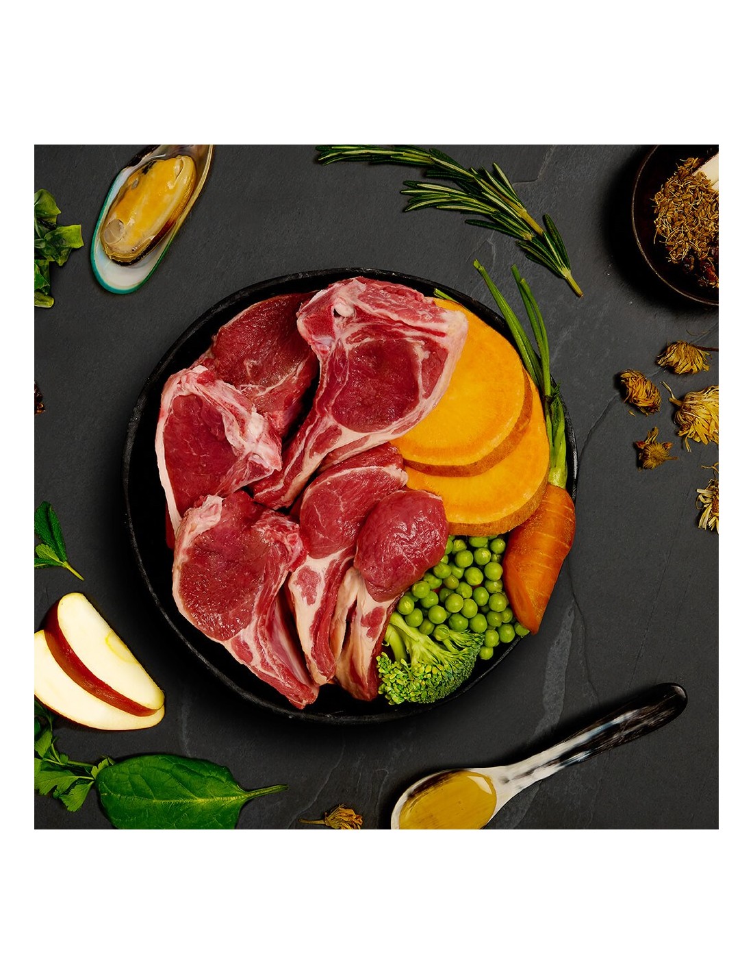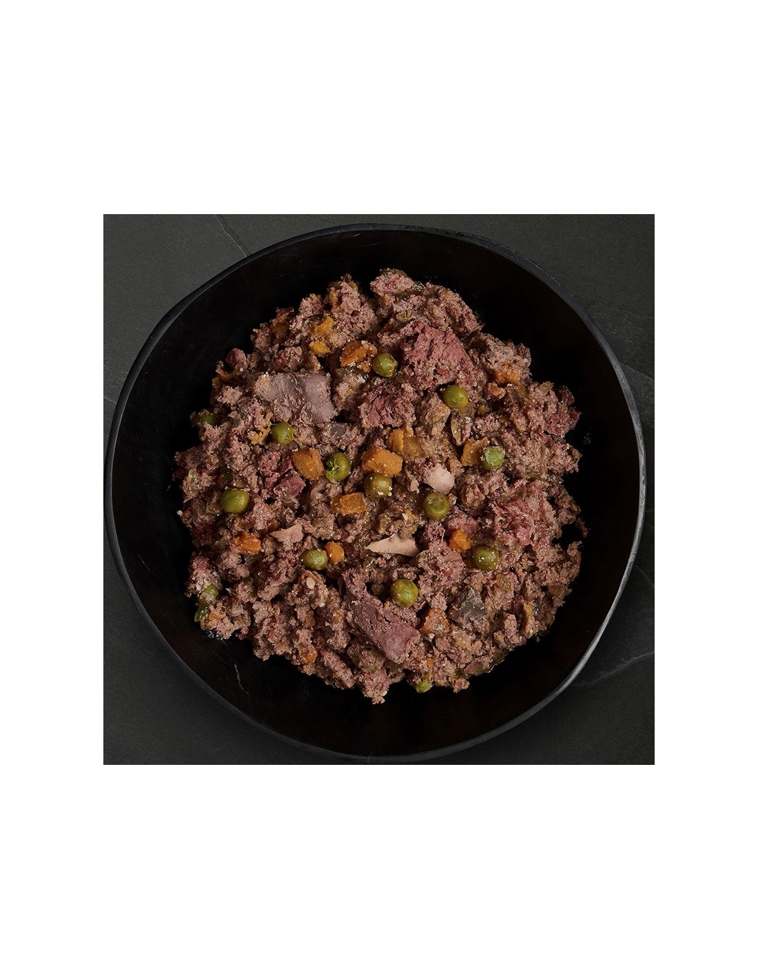 Este alimento húmedo combina tiernos trozos de cordero cocinados a fuego lento con zanahorias, guisantes y patatas en una salsa suculenta, preservando todo el sabor y los nutrientes esenciales.