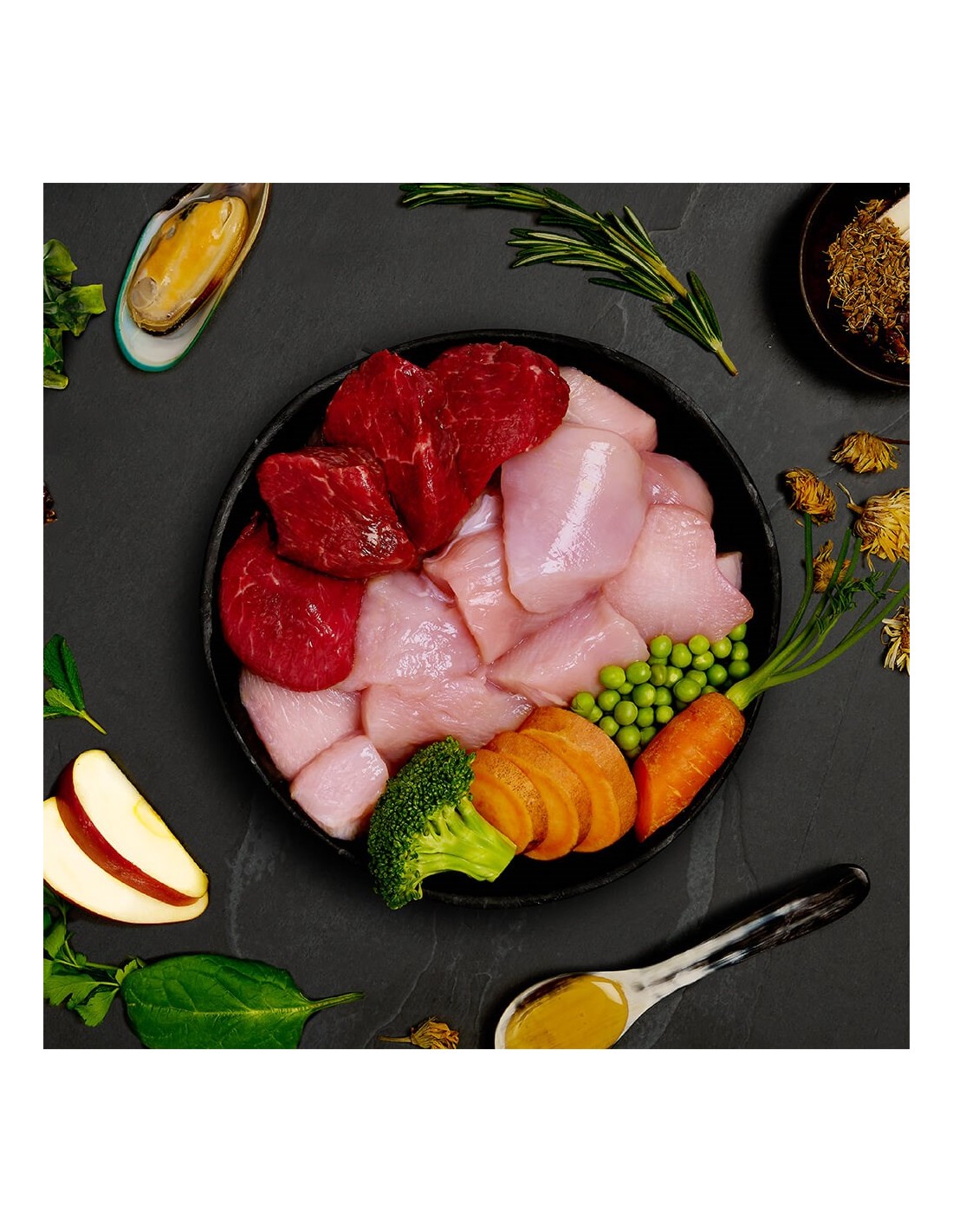 Con aceite de salmón, mejillón de labio verde y una mezcla única de hierbas y productos botánicos, este guiso no solo es delicioso, sino que también apoya la salud articular y la vitalidad general de tu perro.