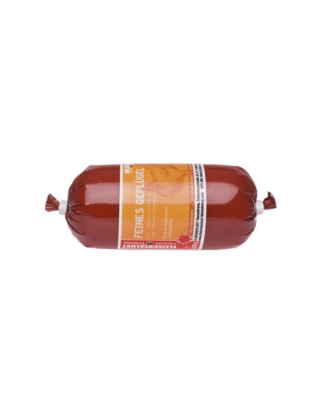 Esta salchicha húmeda está elaborada con carne de ave de corral de alta calidad, proporcionando una fuente rica en proteínas y nutrientes esenciales.