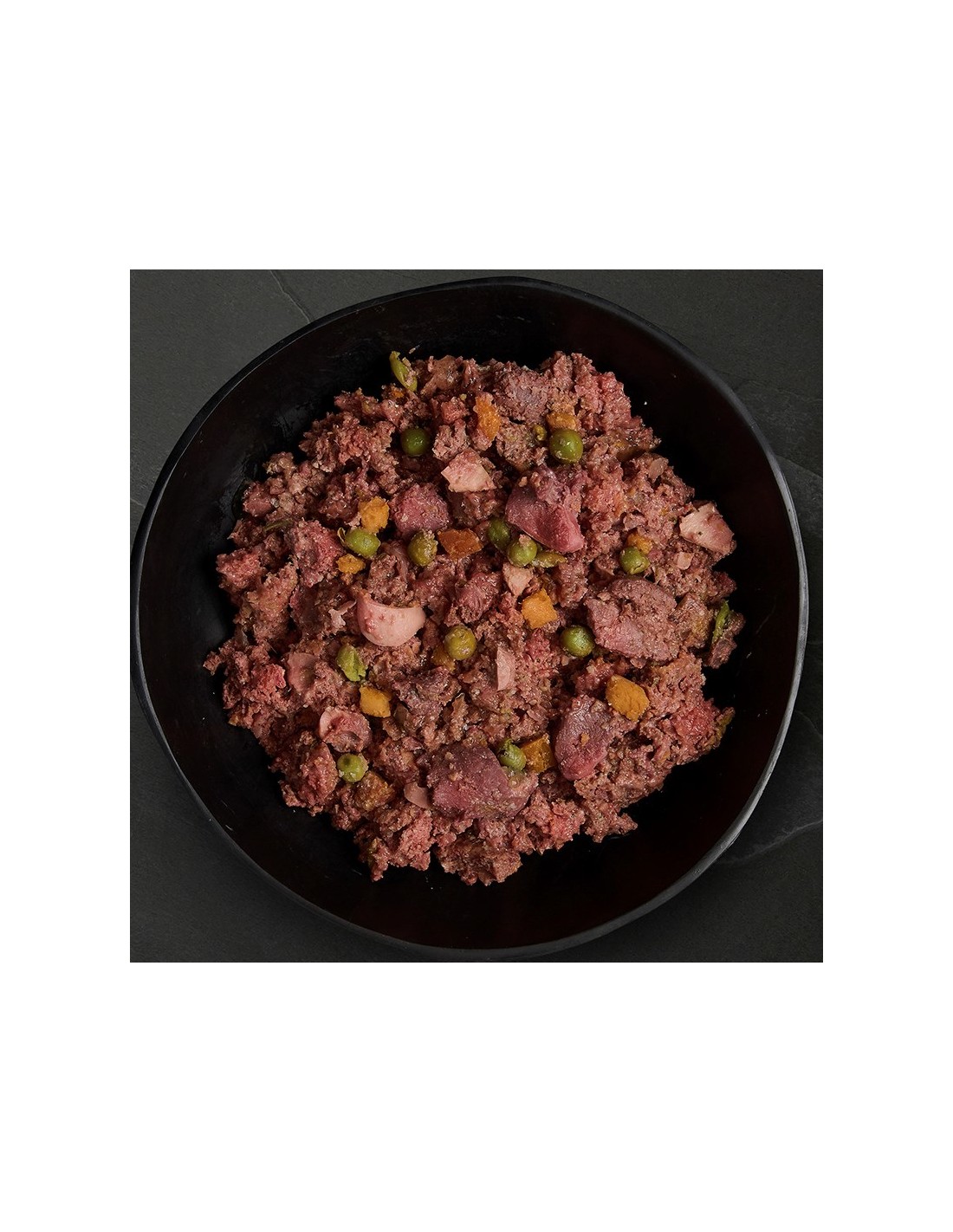 Cada lata de 400 gramos está repleta de trozos selectos de venado y jabalí, cocidos a fuego lento en un suculento estofado que conserva todos los nutrientes esenciales y el sabor natural de la carne.