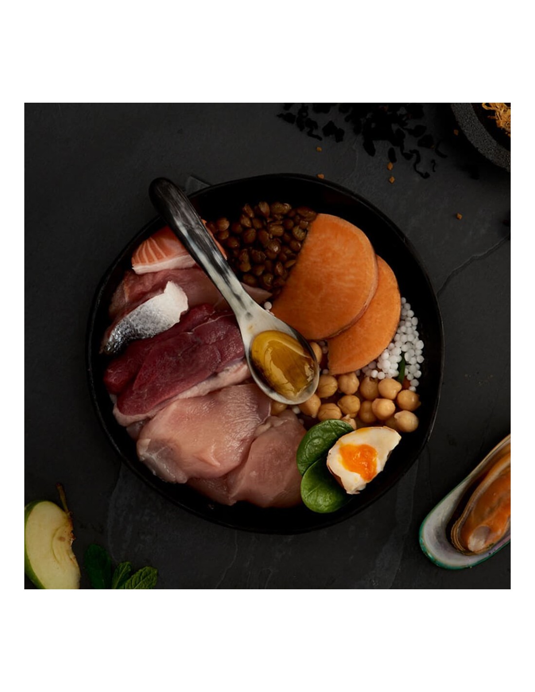 Con un 65% de ingredientes animales y un 35% de frutas y verduras, este festín ofrece una nutrición equilibrada y completa, ideal para perros de todas las razas y edades.