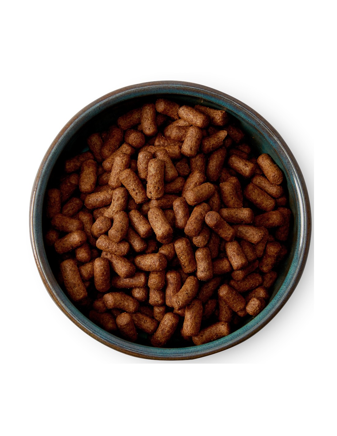 Este pienso también incluye aceite de algas, prebióticos y una mezcla de frutas y verduras frescas, como zanahorias, arándanos y espinacas, que aportan vitaminas y minerales esenciales.