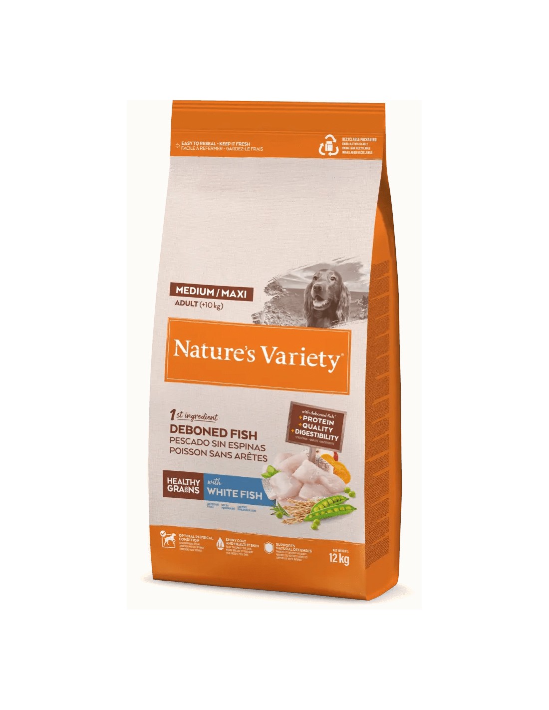 NATURES VARIETY HEALTHY GRAIN PESCADO BLANCO PARA PERROS MEDIANOS Y GRANDES 3 KG 10 KG