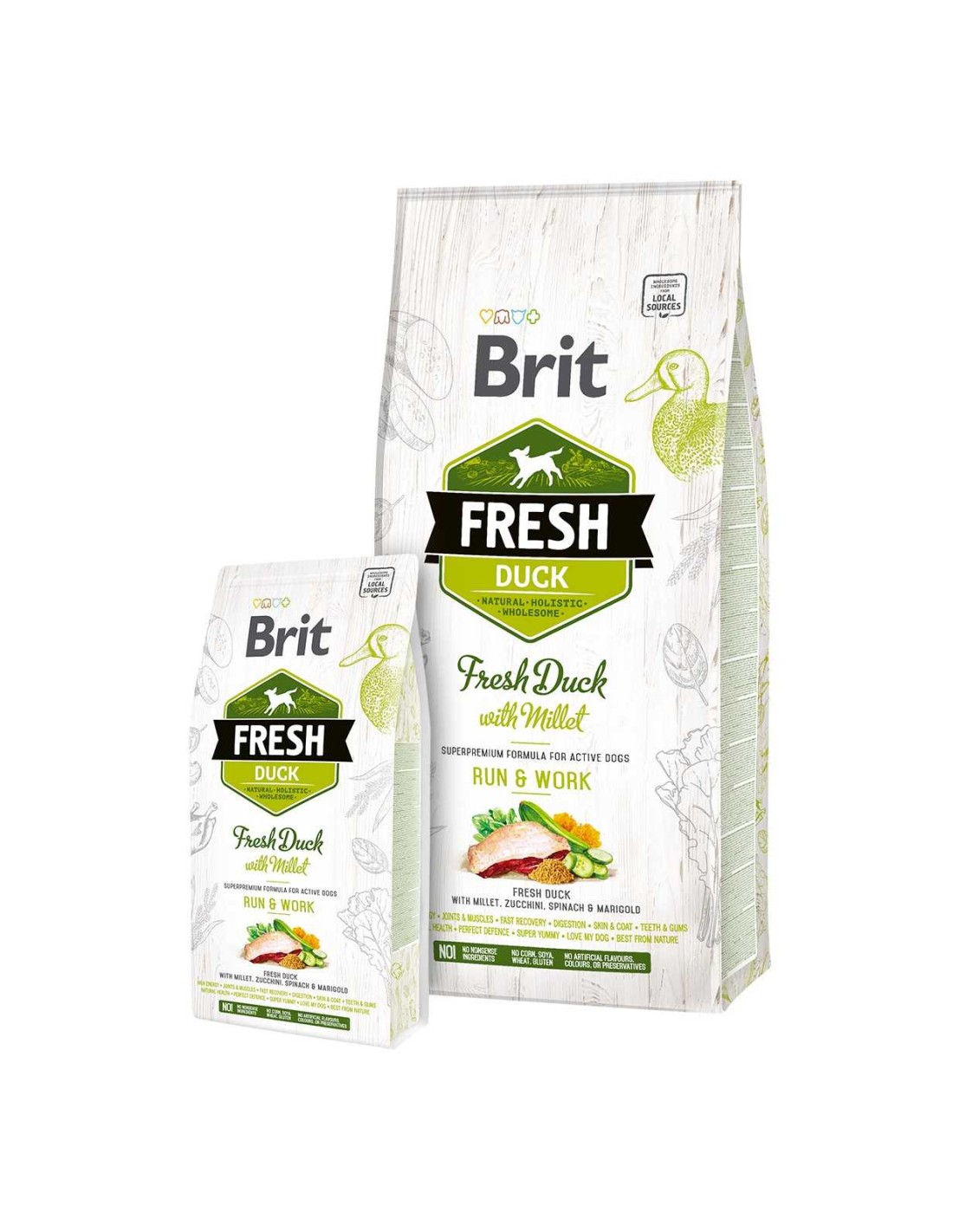 El BRIT FRESH DUCK - MILLET ACTIVE RUN WORK - 80 GR es un alimento superpremium especialmente formulado para perros activos y de trabajo.