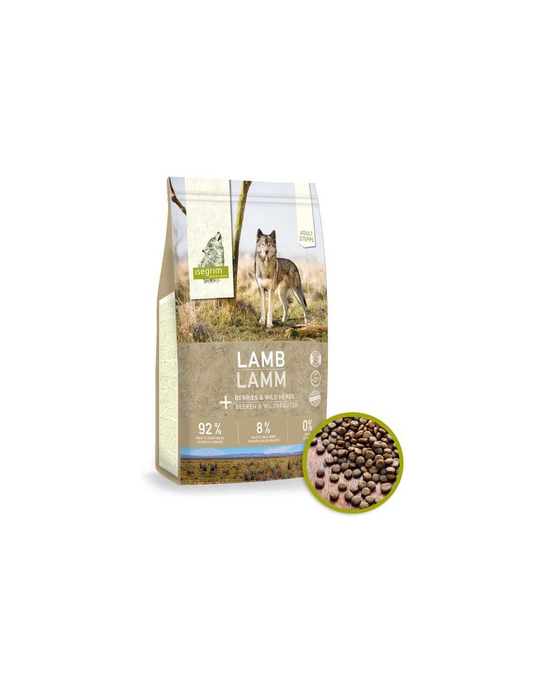 El ISEGRIM ADULT STEPPE LAMB - CORDERO CON BAYAS es un alimento premium para perros adultos que ofrece una combinación única de carne de cordero y bayas frescas.