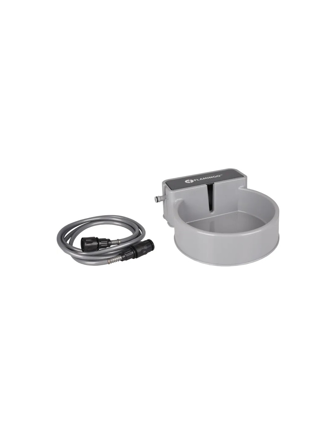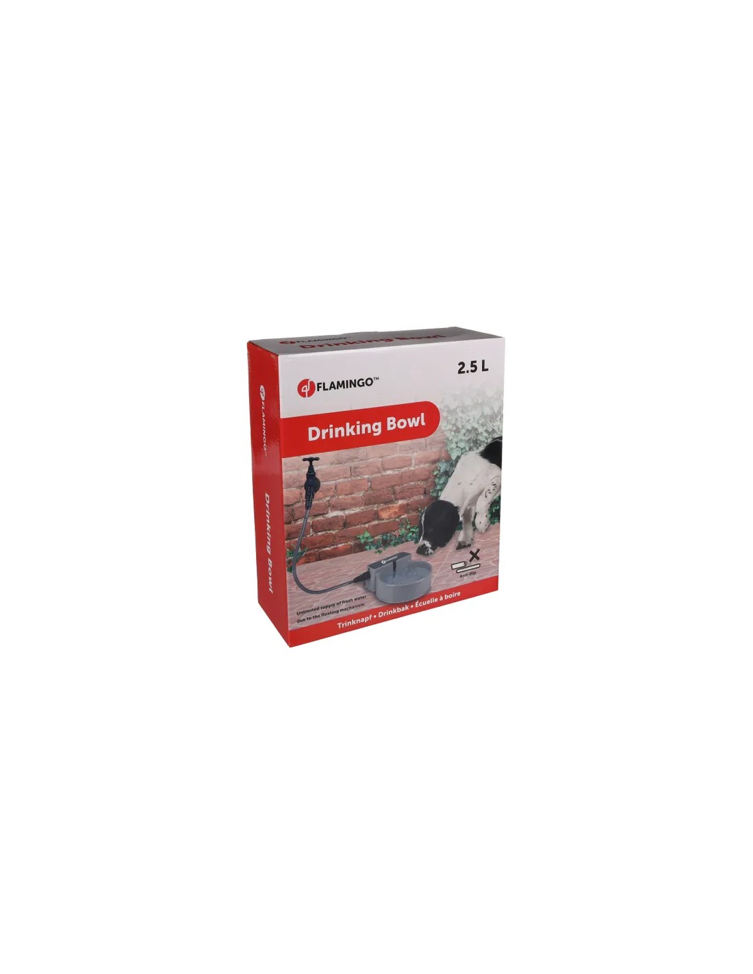 Con una capacidad de 2,5 litros, este bebedero es ideal para exteriores y se conecta fácilmente a la manguera de agua.