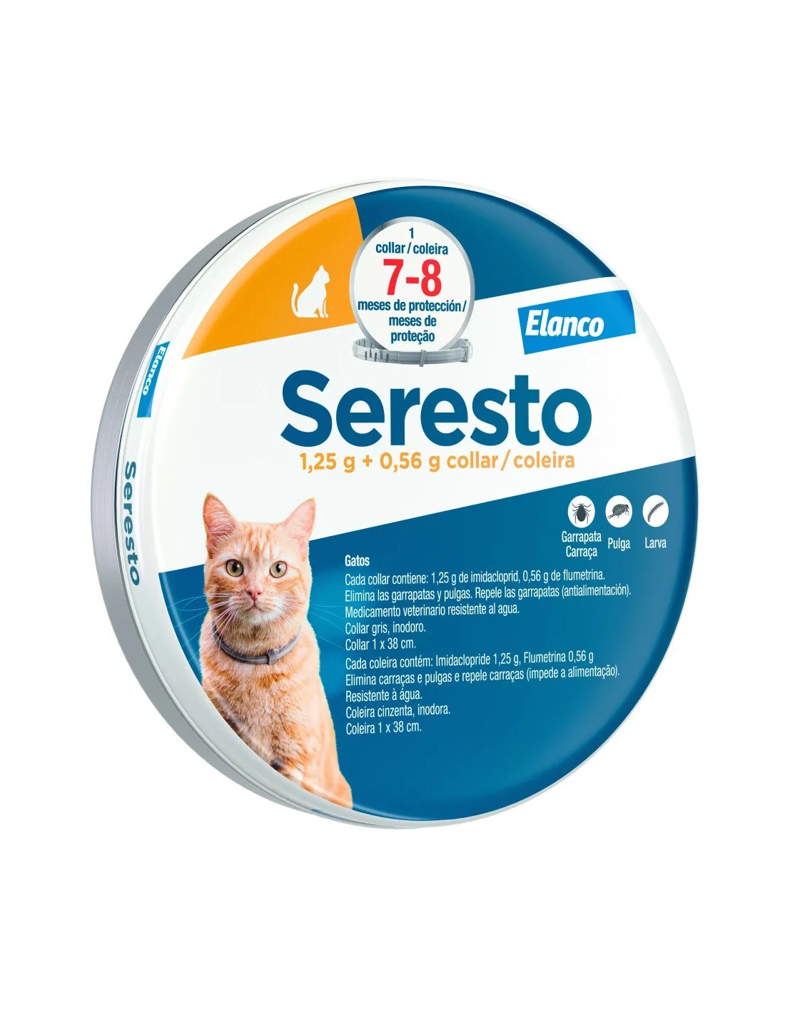 Protege a tu gato con el collar Seresto de Elanco, la solución de larga duración contra parásitos externos más eficaz. Este innovador collar libera de forma controlada dos principios activos que actúan por contacto, eliminando pulgas, garrapatas y piojos sin necesidad de que el parásito pique. Su efecto protector es inmediato y se mantiene ininterrumpidamente hasta 8 meses, ofreciendo tranquilidad durante gran parte del año. Resistente al agua, no se ve afectado por los baños o la lluvia, manteniendo su eficacia. Es seguro, con un mecanismo de liberación que minimiza el riesgo de reacciones adversas, y cómodo gracias a su cierre de seguridad que se suelta bajo presión. Ideal para gatos que acceden al exterior o conviven con perros, rompe el ciclo de infestación en el hogar y previene enfermedades transmitidas por estos parásitos. Un cuidado esencial en forma de collar.