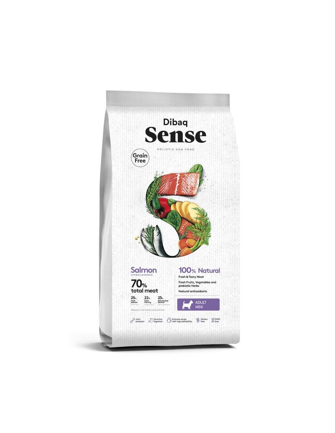El alimento Dibaq Sense Salmon Mini Grain Free es una opción ideal para perros de razas pequeñas con sensibilidad alimentaria.
