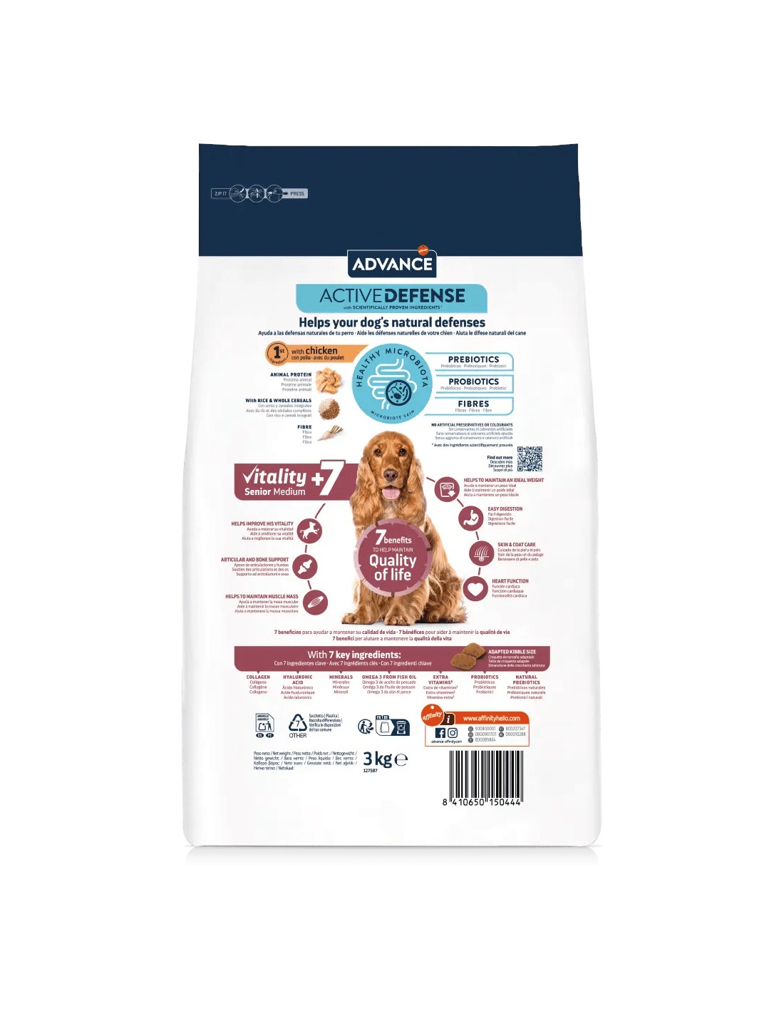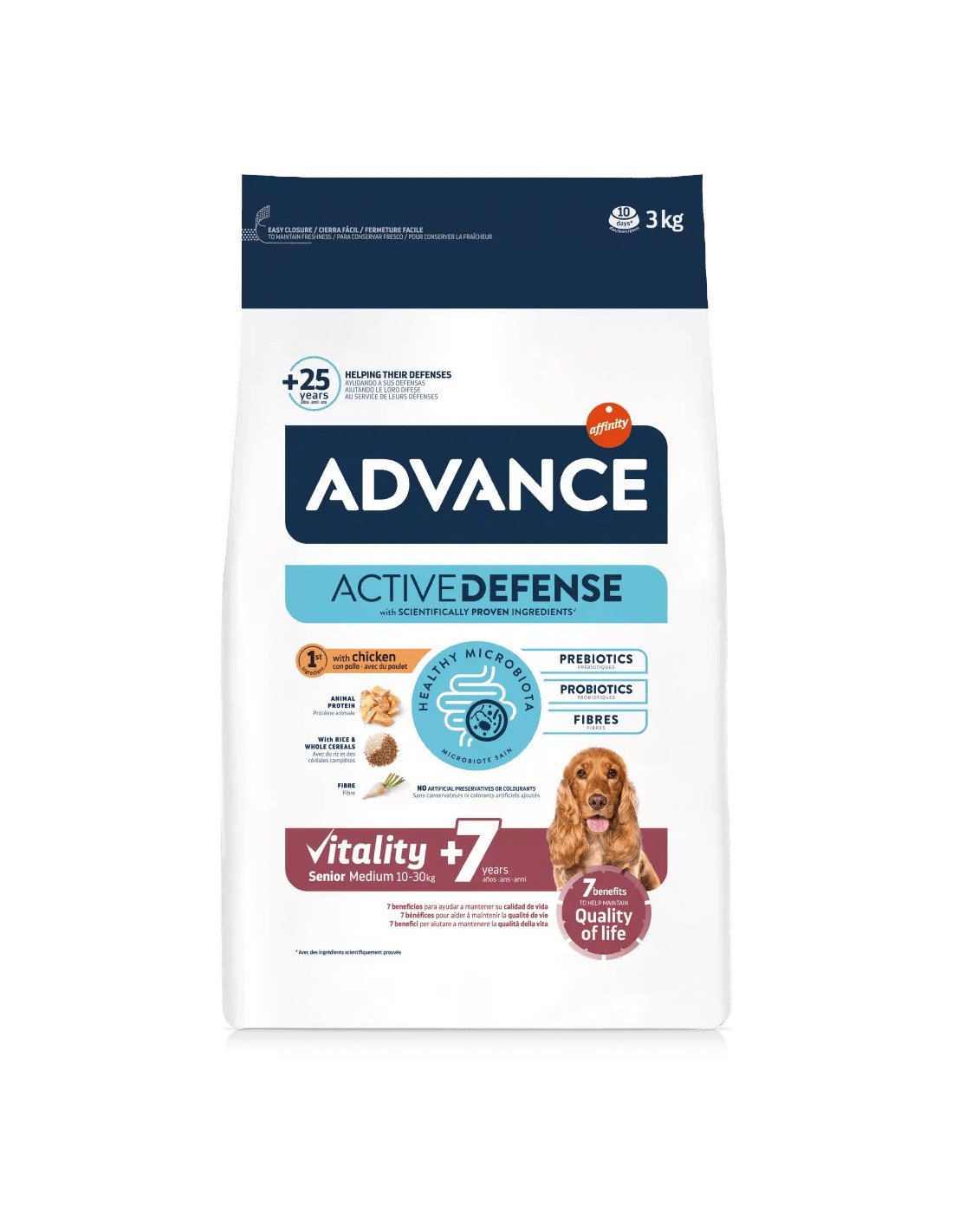 El Affinity Advance Medium 7 es un pienso de alta calidad formulado específicamente para perros de tamaño mediano (10-30 kg) mayores de 7 años.