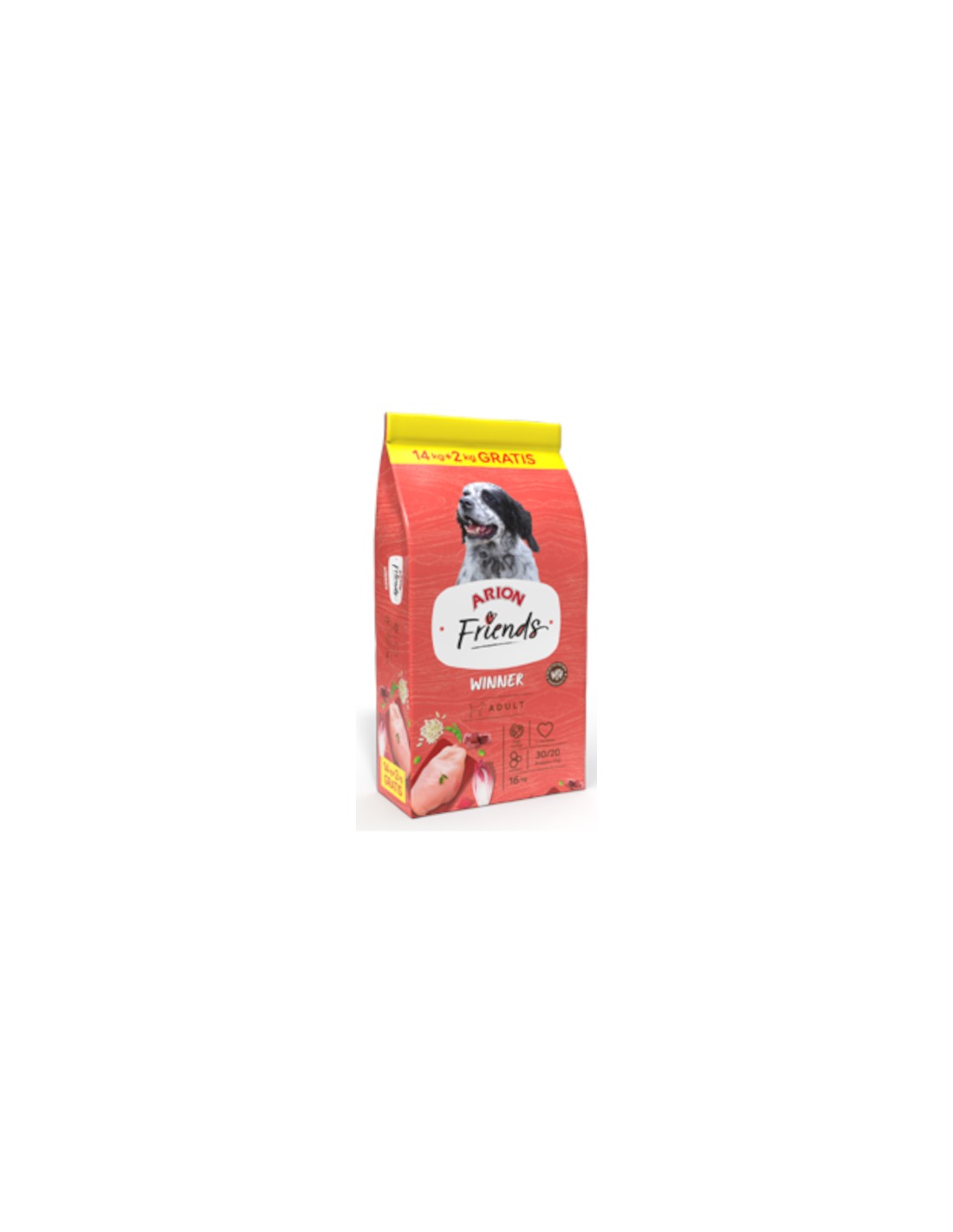 Energía y nutrición para perros activos El ARION FRIENDS WINNER 30/16 - 16 KG es un alimento completo diseñado para perros adultos con un estilo de vida activo.