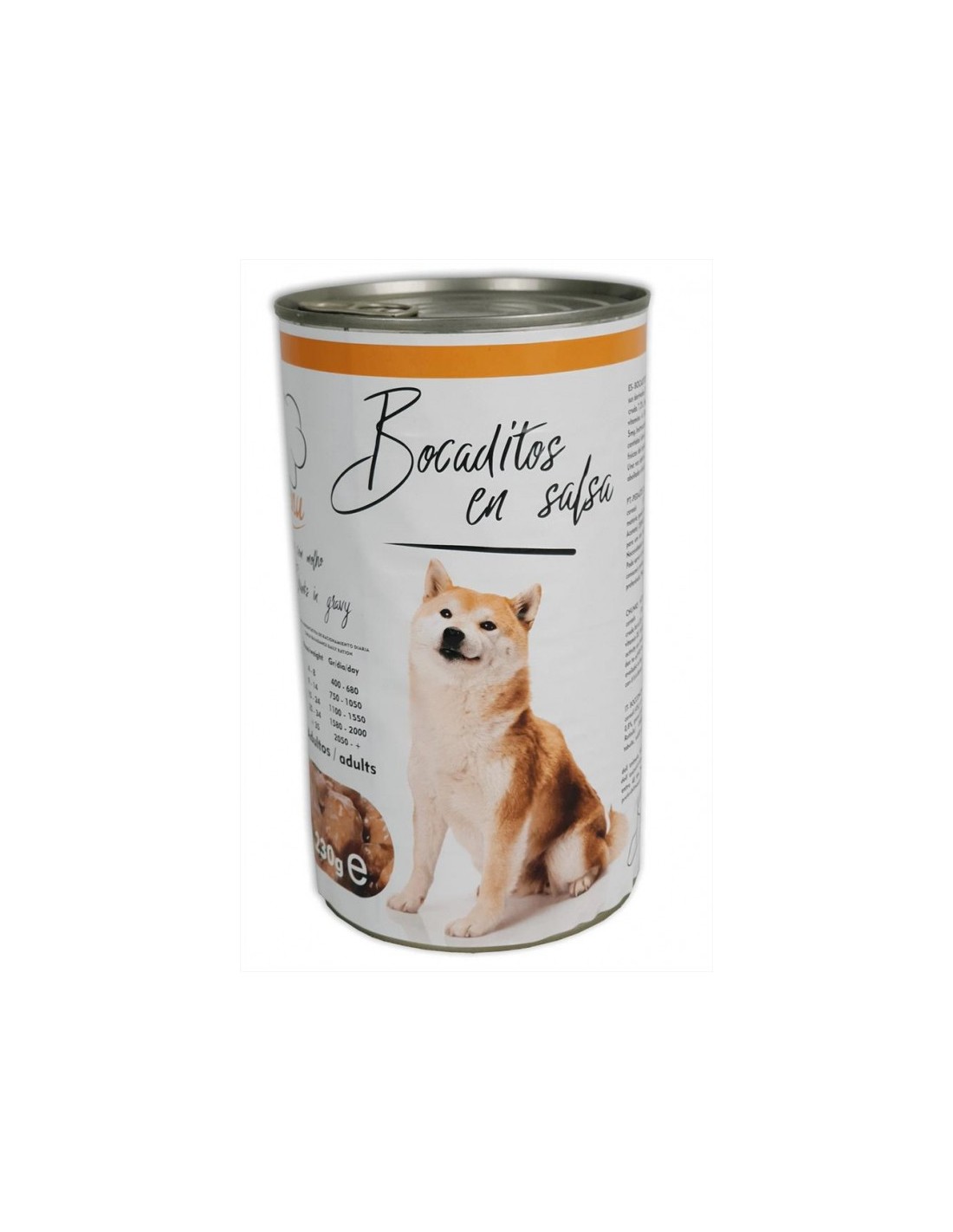 Este envase de 1230 gramos está repleto de deliciosos trozos de ternera bañados en una salsa exquisita que hará las delicias de cualquier perro.