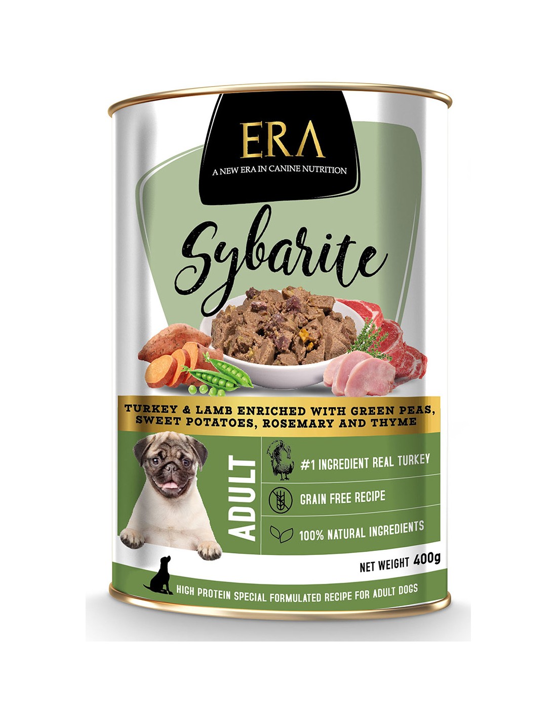 SYBARITE PAVO Y CORDERO CON GUISANTES PARA PERROS ERA - 400 GR