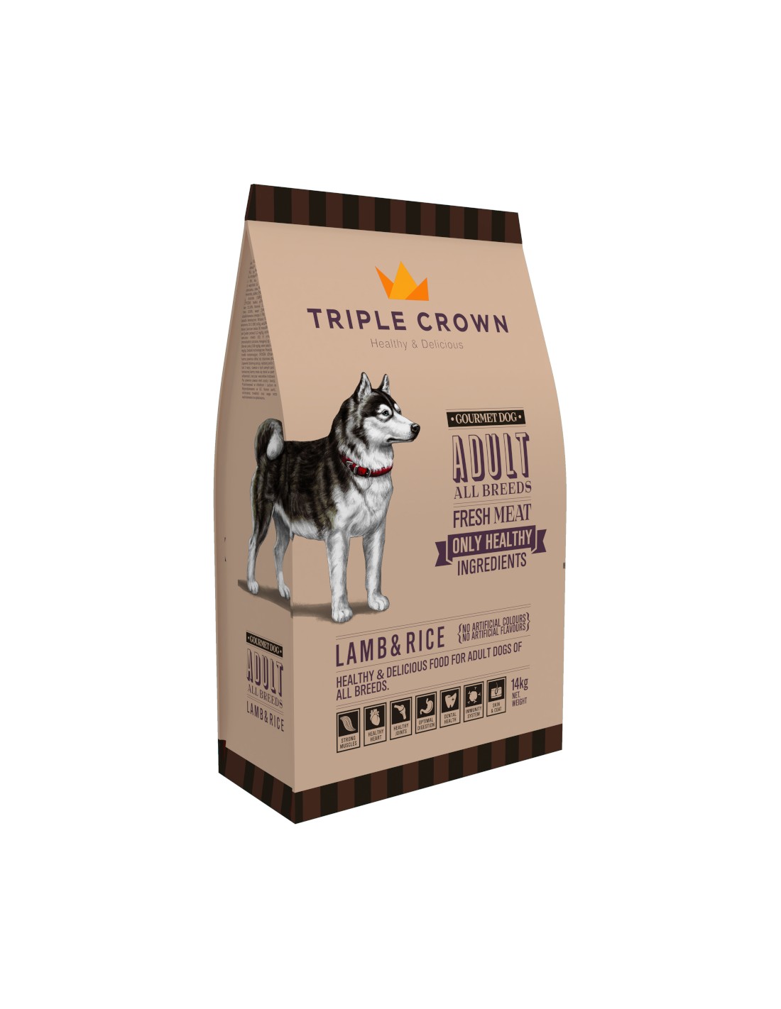 El TRIPLE CROWN GOURMET DOG es un alimento premium formulado para perros adultos de todas las razas.