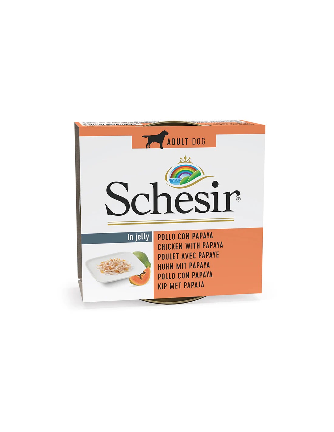 El Schesir Pollo con Papaya en Gelatina para Perros es una opción nutritiva y deliciosa que combina ingredientes 100% naturales.